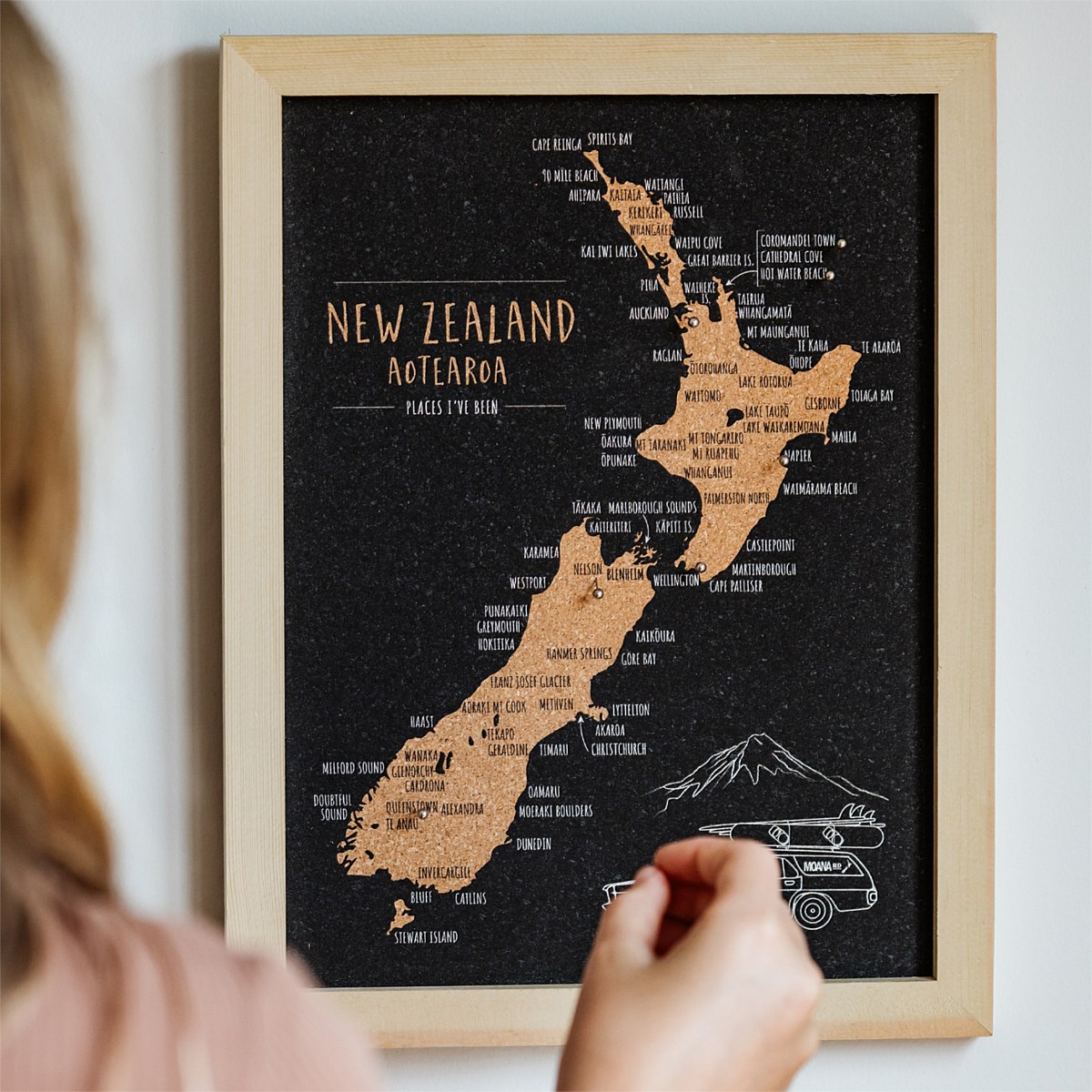 This beautifully framed map allows you to mark all the places you've visited in Aotearoa with pins, inspiring you to plan your next adventure.