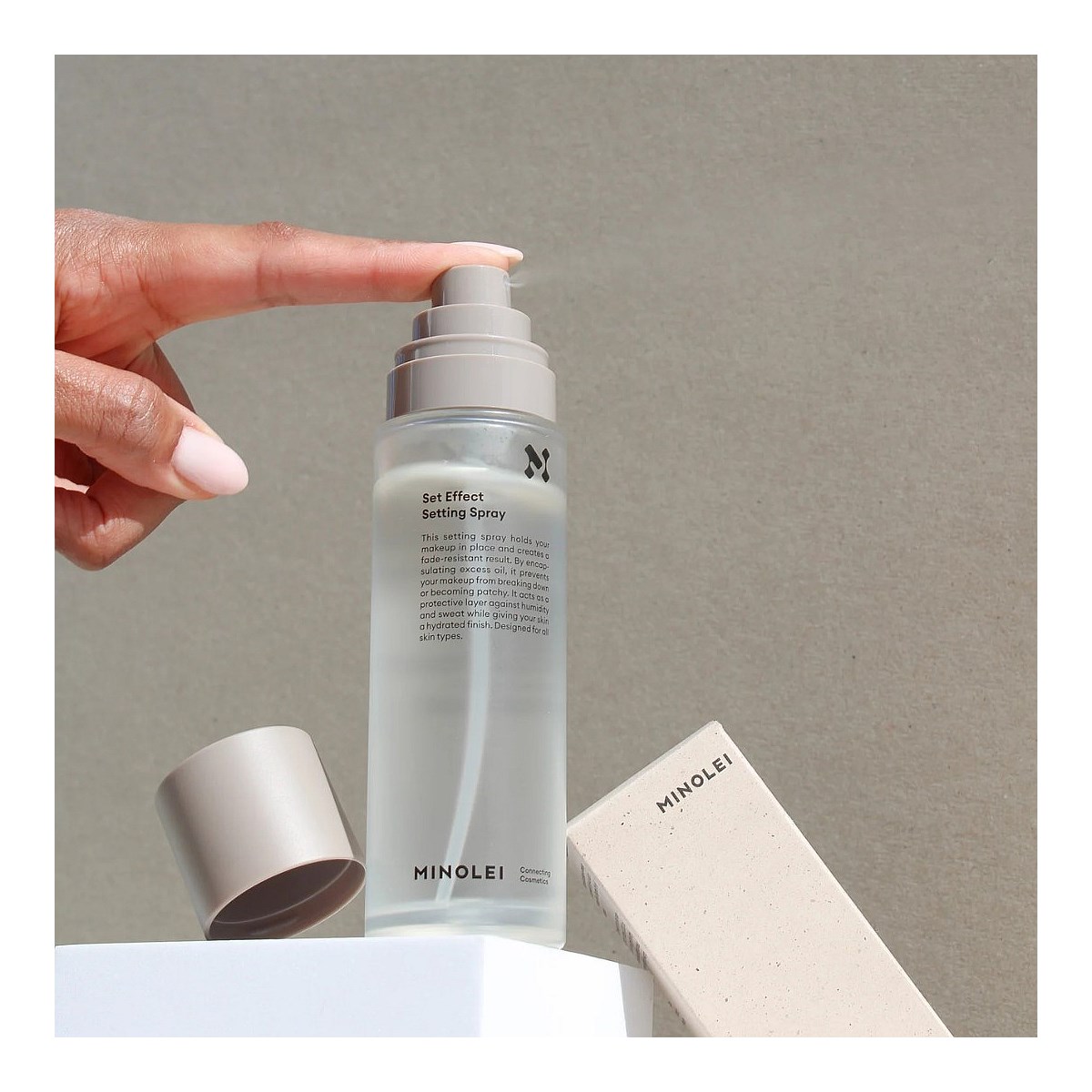 Set Effect Spray is perfect if you’re looking for a glowy finish with exceptional long-lasting result, if you experience makeup smudging or melting during the day, or if you want to make your powder products blush, bronzer, and eyeshadow more long-lasting. Its unique encapsulating effect is suitable for both dry patches and shiny zones in the face - in short - it won't make oily skin, oilier or dry skin, drier!