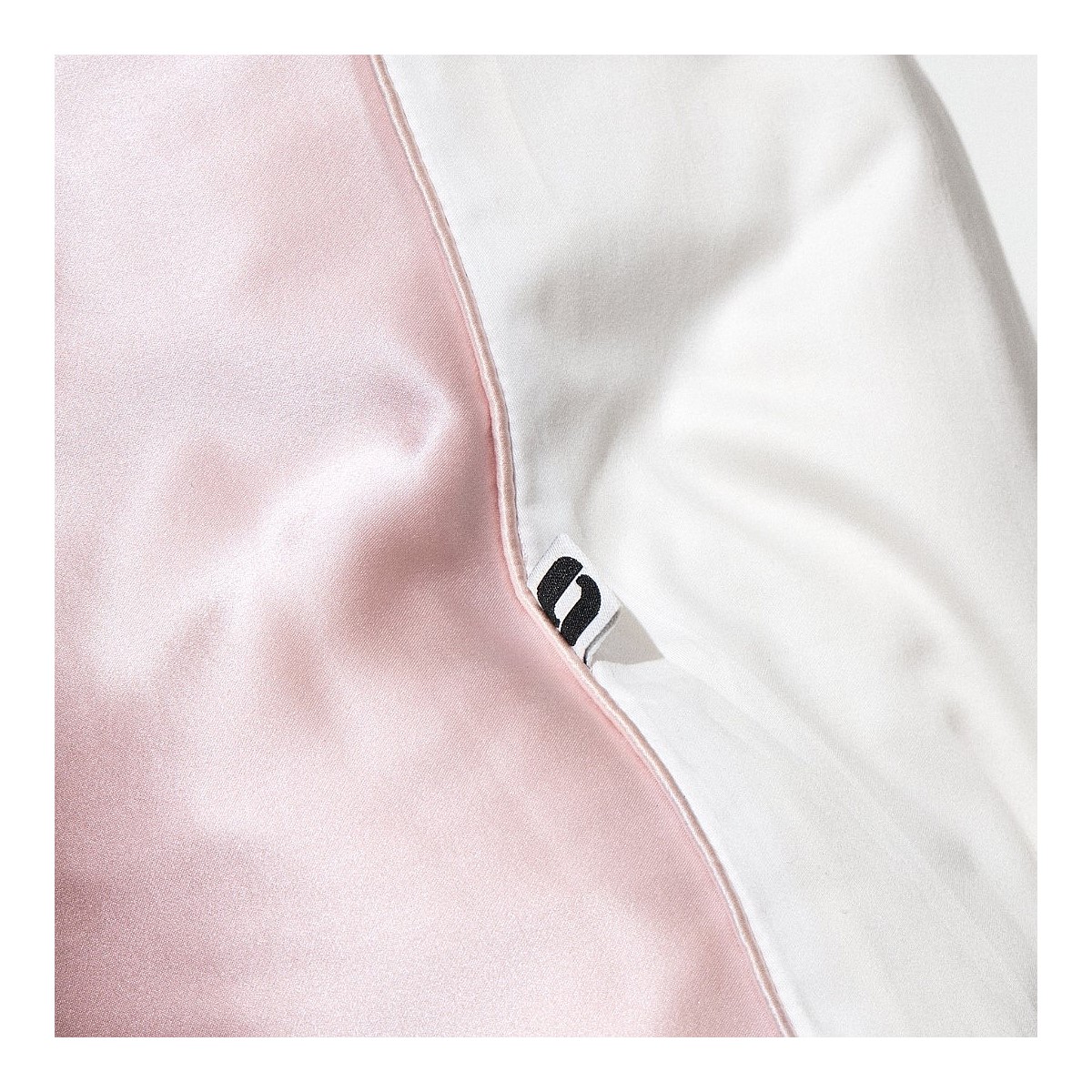 Finished in a soft Rose Quartz silk colourway - inspired by the romantic energy of the Rose Quartz crystal, a stone known for healing and unconditional love - and paired with white cotton underneath with a with a zip closure and stunning silk piped edging for the ultimate luxury.