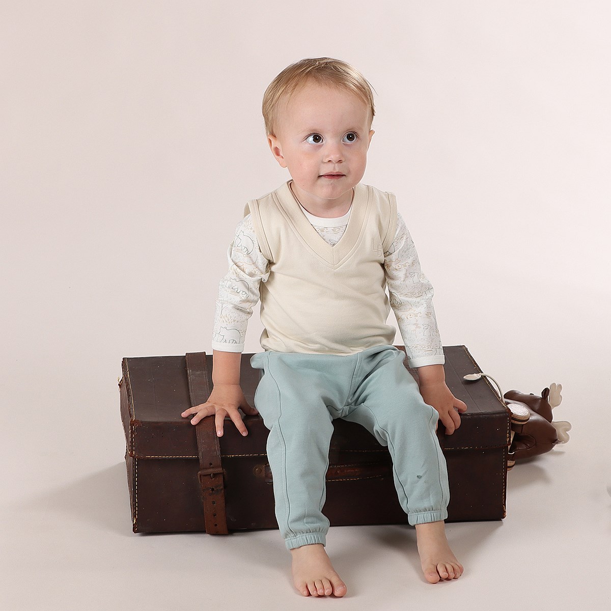 Let your little dreamer soar, taking flight amongst the hot air balloons and fluffy clouds of this new Little Bee collection. Soft, breathable, and full of whimsy, it’s perfect for everyday adventures and sweet sky-high dreams. Discover comfort and style with our Cotton Fleece Pants in a trendy Blue Mist hue.