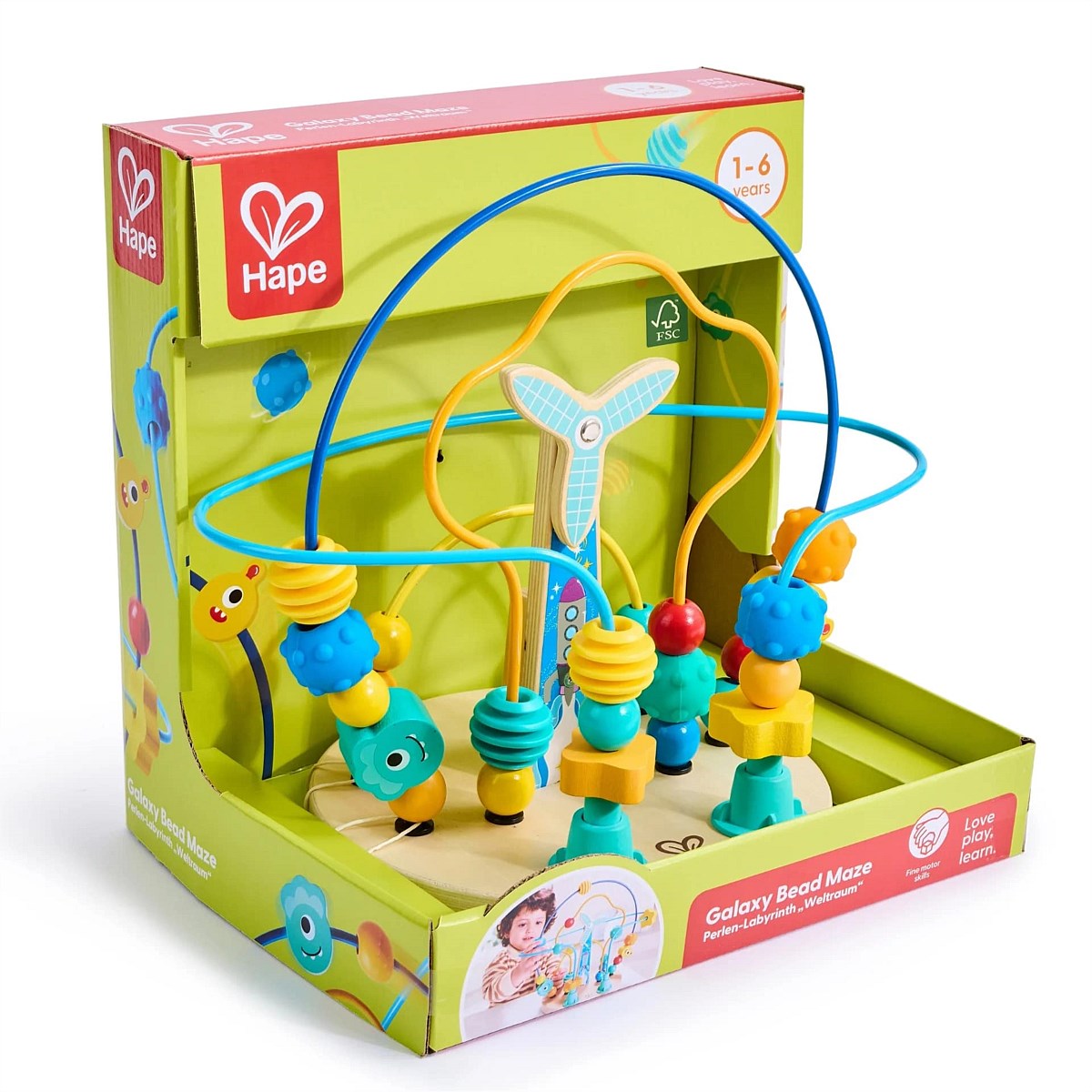 Explore a beaded outer space adventure! Navigate through the stars, and planets, being careful not to bump into any aliens in this interactive bead maze. As children navigate the beads through the maze, they`ll improve their hand-eye coordination and fine motor skills, plus, the mix of alien and planet beads offers an additional sensory treat. SPACE FUN: The bead maze features an exciting space-themed design with alien and planet-shaped beads ready to children on an out-of-this-world adventure. ROTATING WINDMILL: The windmill in the middle is not only great fun to spin by hand but it also plays a key role in the toy`s functionality. As the windmill turns, it helps guide the beads along the wire! AMAZING CATAPULT ACTION: Equipped with 2 powerful catapults, children can experience the thrill of watching beads slide upward with a simple press, learning about the power of action and reaction. SENSORY FUN WITH TACTILE BEADS: Featuring a delightful mix of beadsu2014cute monsters, stars, and spheresu2014each with unique textures like soft silicone, this set provides an engaging, multi-sensory experience for tactile exploration and play. PROMOTES COGNITIVE & MOTOR SKILLS: The bead winding maze serves as an educational tool, fostering colour recognition, hand-eye coordination, and fine motor skill developmentu2014all through engaging play.