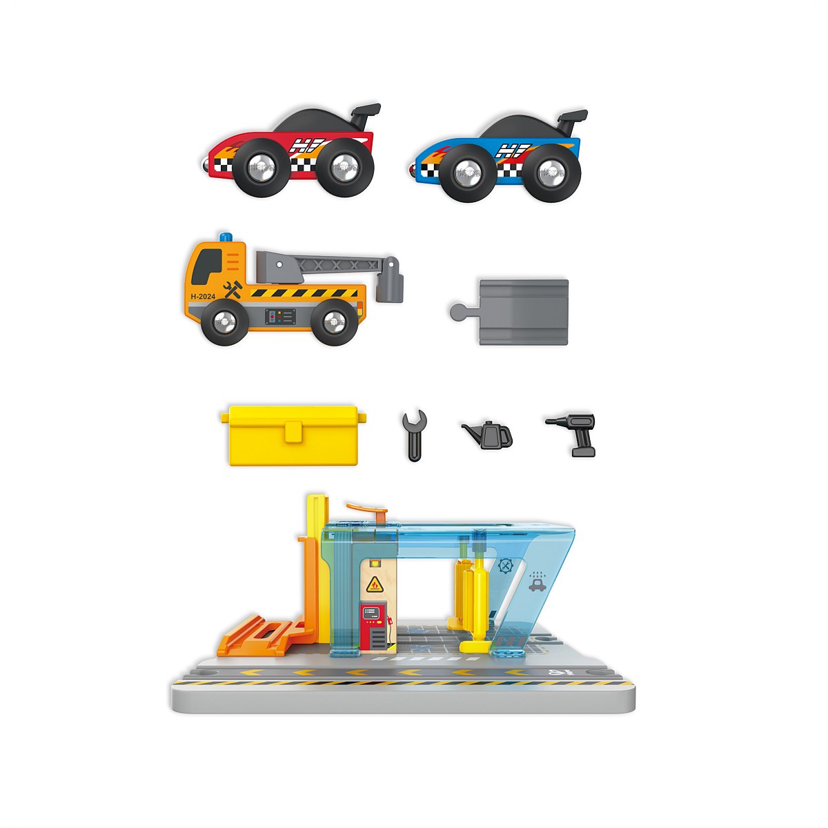 Endless cleaning fun awaits! Tow, wash, and launch cars and trains in this innovative car wash station set.