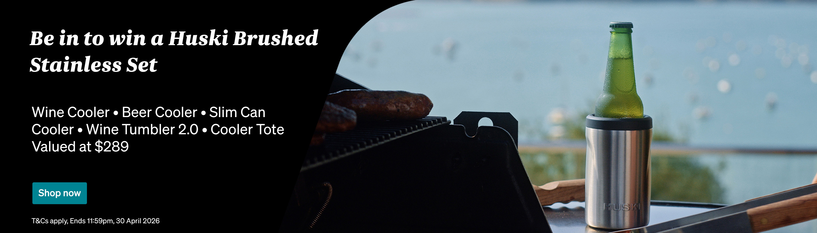 Purchase any Huski products and go in the draw to win a Brushed Stainless Set (includes wine, beer & slim can cooler, wine tumbler 2.0 & cooler tote, valued at $289. Offer ends 11:59pm, 30 April 2026. T&Cs and exclusions apply.
