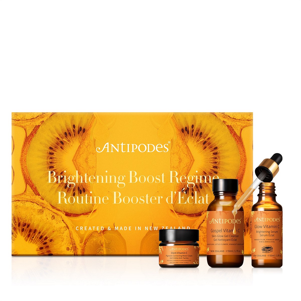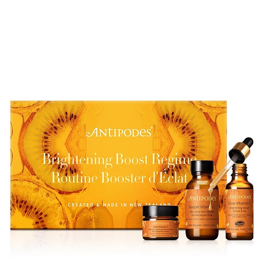 Natural vitamin C skincare gift set for brighter skin, featuring three vegan formulations from Antipodes, the ideal Christmas beauty gift.Glow Vitamin C Brightening Serum (30ml).The best natural vitamin C serum, with Kakadu plum and plant hyaluronic acid.Mini Gospel Vitamin C Skin-Glow Gel Cleanser (50ml).Non-drying vitamin C gel cleanser to refresh the complexion as it lifts lifeless skin.Non-drying vitamin C gel cleanser to refresh the complexion as it lifts lifeless skin.Mini Diem Vitamin C Pigment-Correcting Water Cream (15ml).Brightening Vitamin C moisturiser to target dull skin and dark spots.