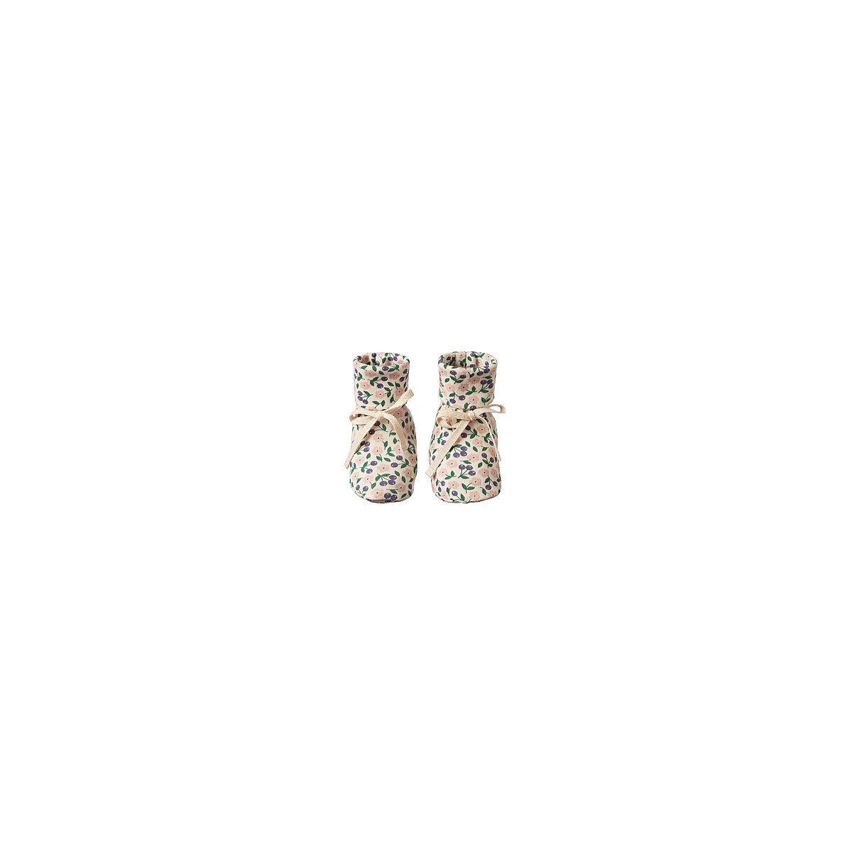 A lovely cotton bootie style designed to stay on little feet. Featuring a fold down cuff and a sweet bow at the front. To minimise shrinkage, this fabric has been pre-washed.
