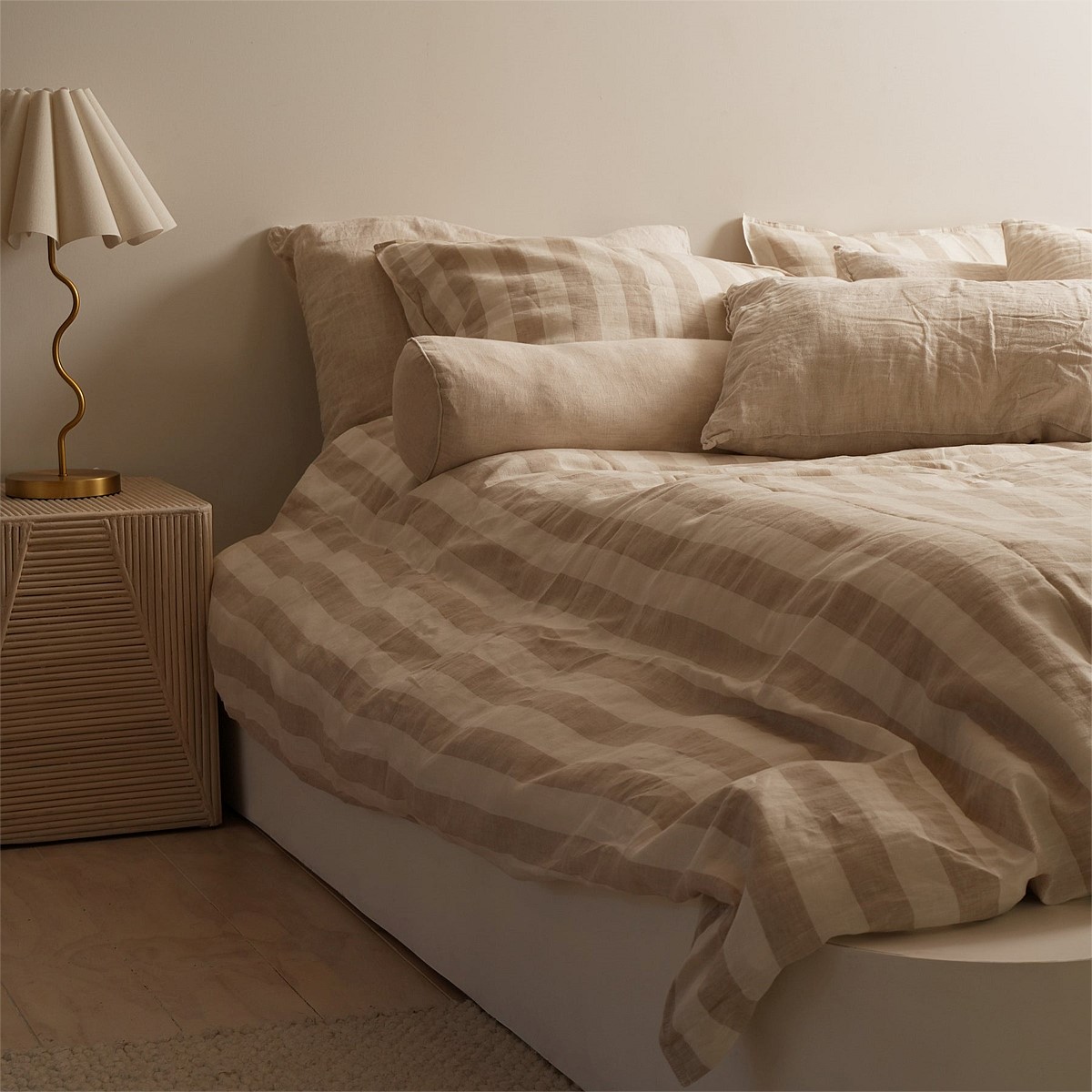 100% French Flax Linen Duvet Cover Set - Wide Natural Stripe