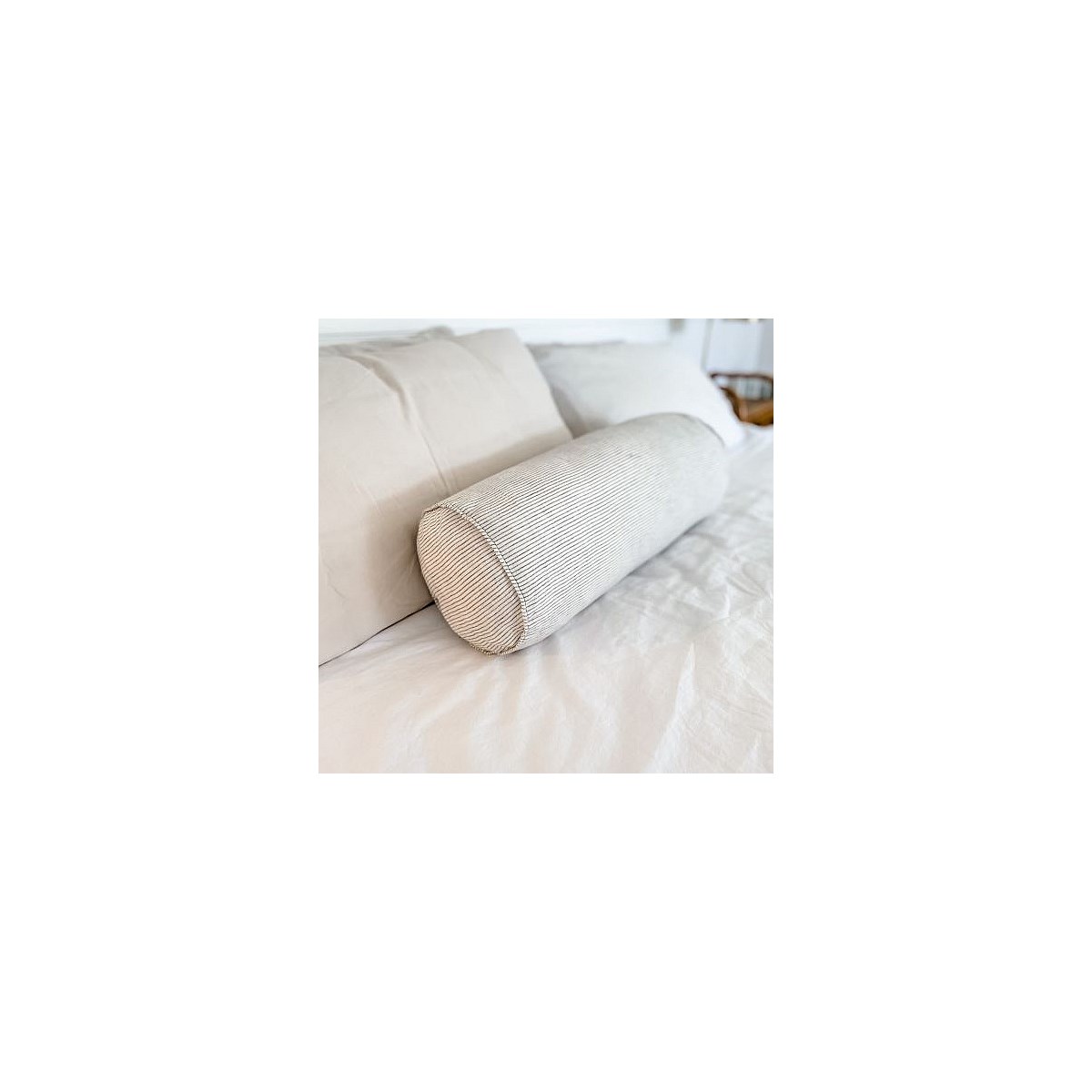 100% French Flax Linen Feather filled Bolster Cushion- Charcoal Pinstripe