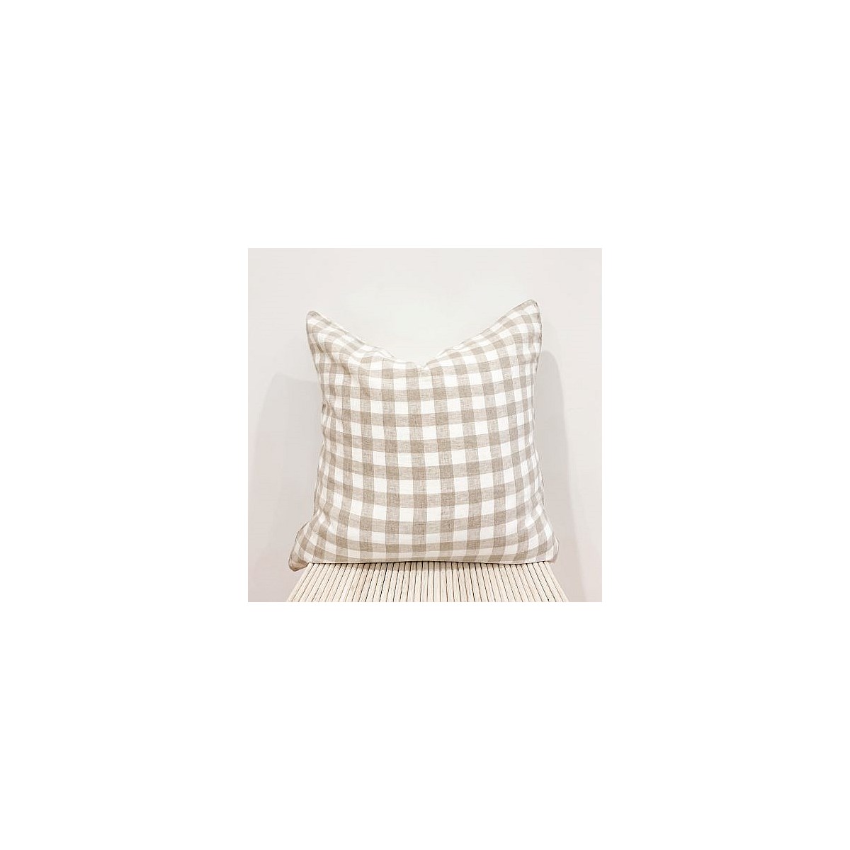 100% French Flax Linen Feather filled Cushion- Natural Gingham