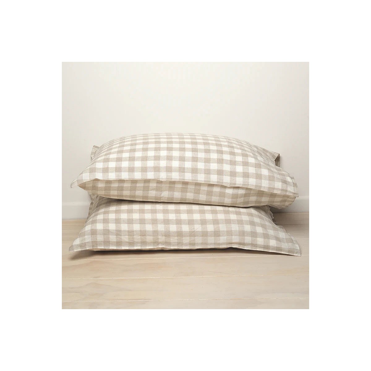 100% French Flax Linen Pillowcase Pair- Natural Gingham