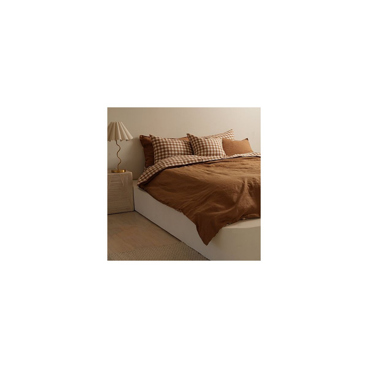 Our newest colourway in Ginger Gingham includes Ginger Gingham on the front side and a solid Ginger reverse. You can style this either way making this Linen Duvet Set an even better investment- getting 2 colourways in 1!