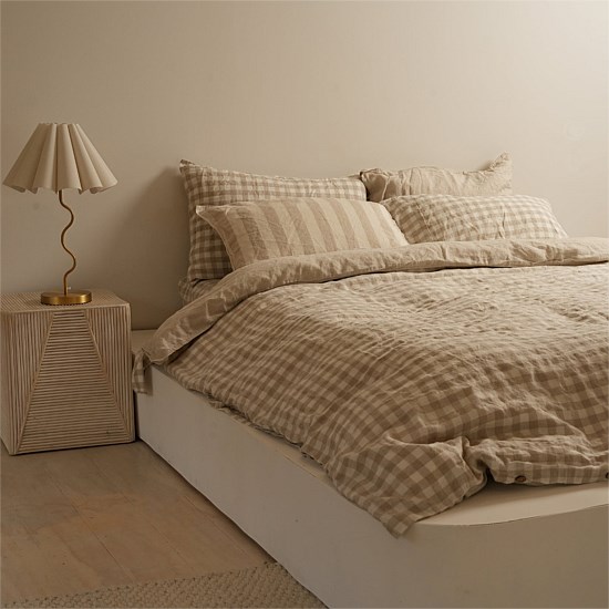Our newest colourway in Natural Gingham includes Natural Gingham on the front side and a solid Natural Oat reverse. You can style this either way making this Linen Duvet Set an even better investment- getting 2 colourways in 1!