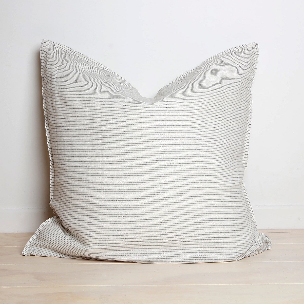 100% French Linen Euro pillowcase- Charcoal Pinstripe