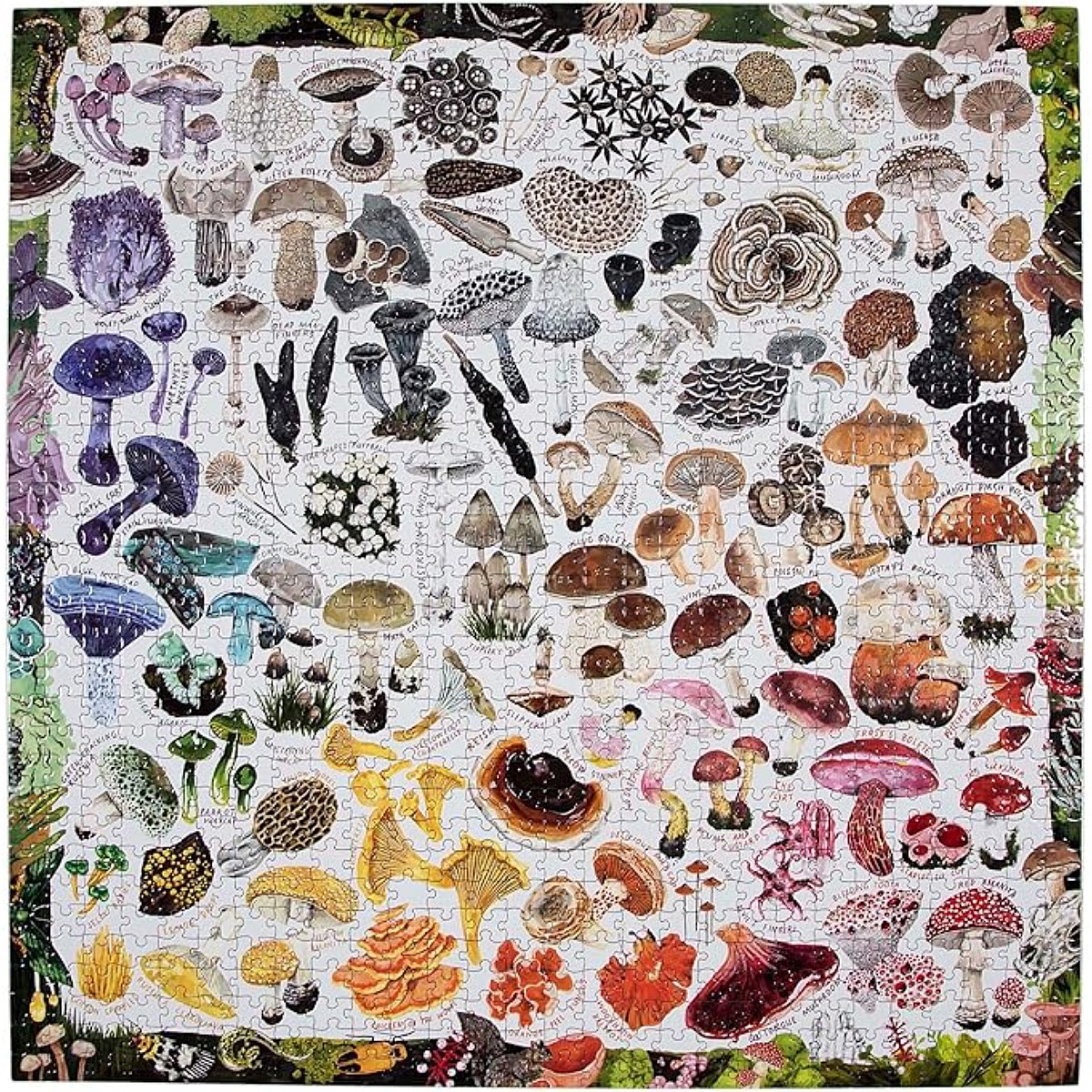 hiitake, Red Amanita, Oyster... These are but a handful of fascinating fungi you’ll find as you piece together this Mushroom Rainbow 1000 Piece Puzzle, illustrated by Kelsey Oseid. If the challenge of completing this piece-by-piece isn’t enough, we invite you to get familiar with each variety and see if you can list them afterward! Who knew there were so many? And in every hue! Nature is truly incredible.Puzzle size when completed: 23 inches x 23 inches