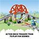 Boost a toddler’s learning journey with this track extension set. It features a buildable elevated bridge and 8 straight track pieces to take a preschooler’s LEGO® DUPLO® train on a whole new adventure. There’s also a functioning barrier element that toddlers can raise and lower and an engineer figure with a cell phone. The action brick brings play to life, making the train stop and play sounds.