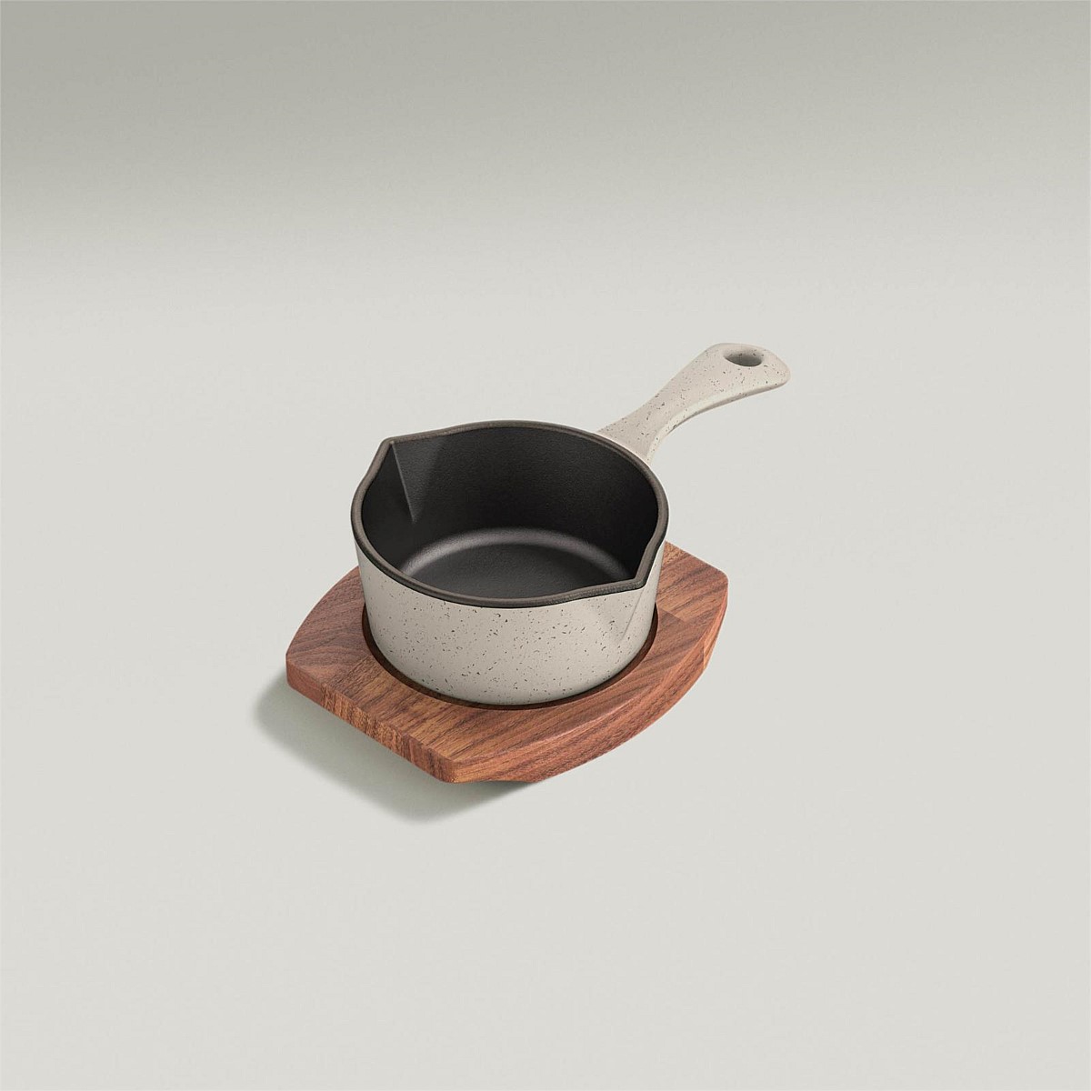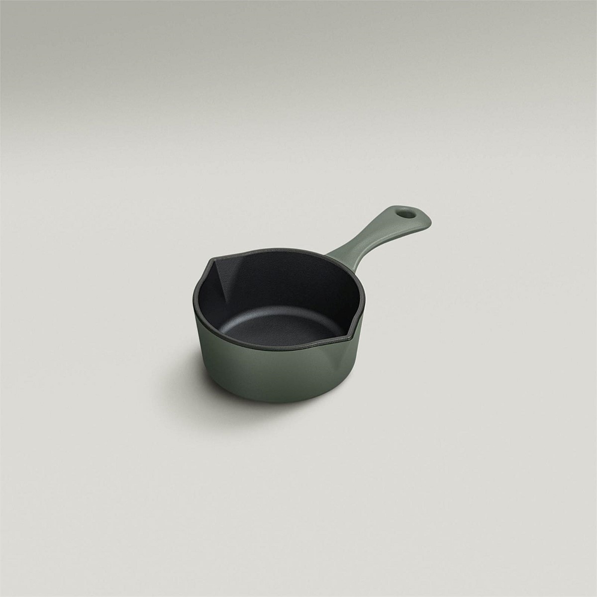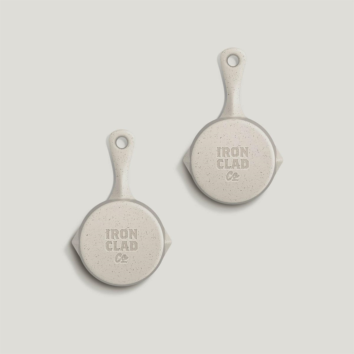 A pair of 10cm cast iron mini skillets finished in satin enamel.