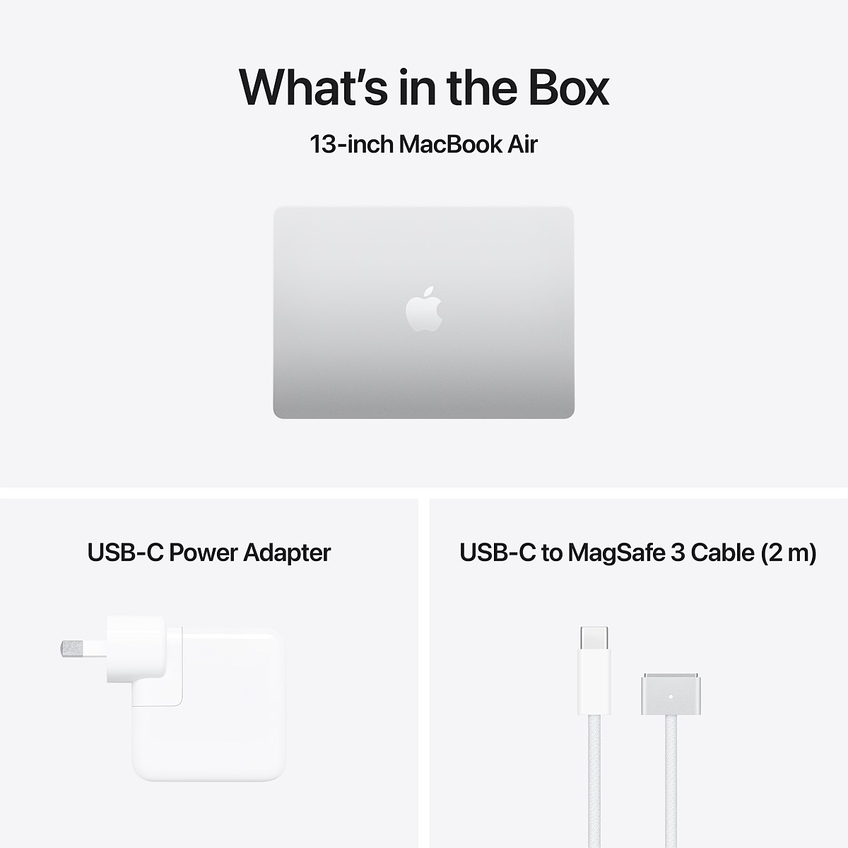 3Screen size is measured diagonally. The display on the 13-inch MacBook Air has rounded corners at the top. When measured as a standard rectangular shape, the screen is 13.6 inches diagonally (actual viewable area is less).
