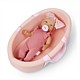 The LullaBaby doll & bassinet set let kids cuddle, cradle, and cherish their baby doll as they explore precious role-play. The bassinet has a modern-like, speckled white design and comes with a 14-inch baby doll to care for and love. Baby doll has unique gray eyes, soft-to-touch eyelashes, a realistic face with detailed hands and feet, and a huggable soft body. Little hands can easily remove the polka-heart pajama and hat when it’s time for a change, and they can soothe baby with the included pacifier accessory. Easy to clean and durable for everyday play, the bassinet is perfect for young nurturers to create a little nursery in their favorite play areas or keep their doll bedside at night. This LullaBaby doll bassinet set is compatible with most 14" baby dolls and accessories. Suggested for kids ages 2 years old and up. Safety tested to meet all regulatory phthalates and BPA requirements.