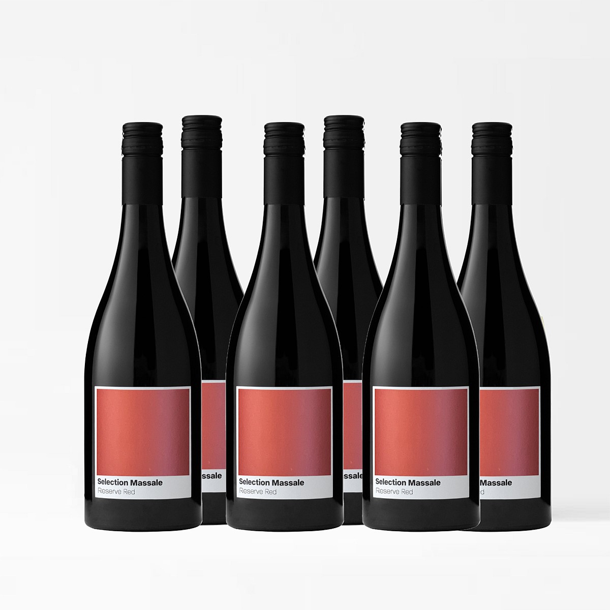 This pack contains six bottles of the 2022 Selection Massale Reserve Red, a rich, generous blend of Merlot, Pinot Noir and Tempranillo with great depth of flavour and structure.