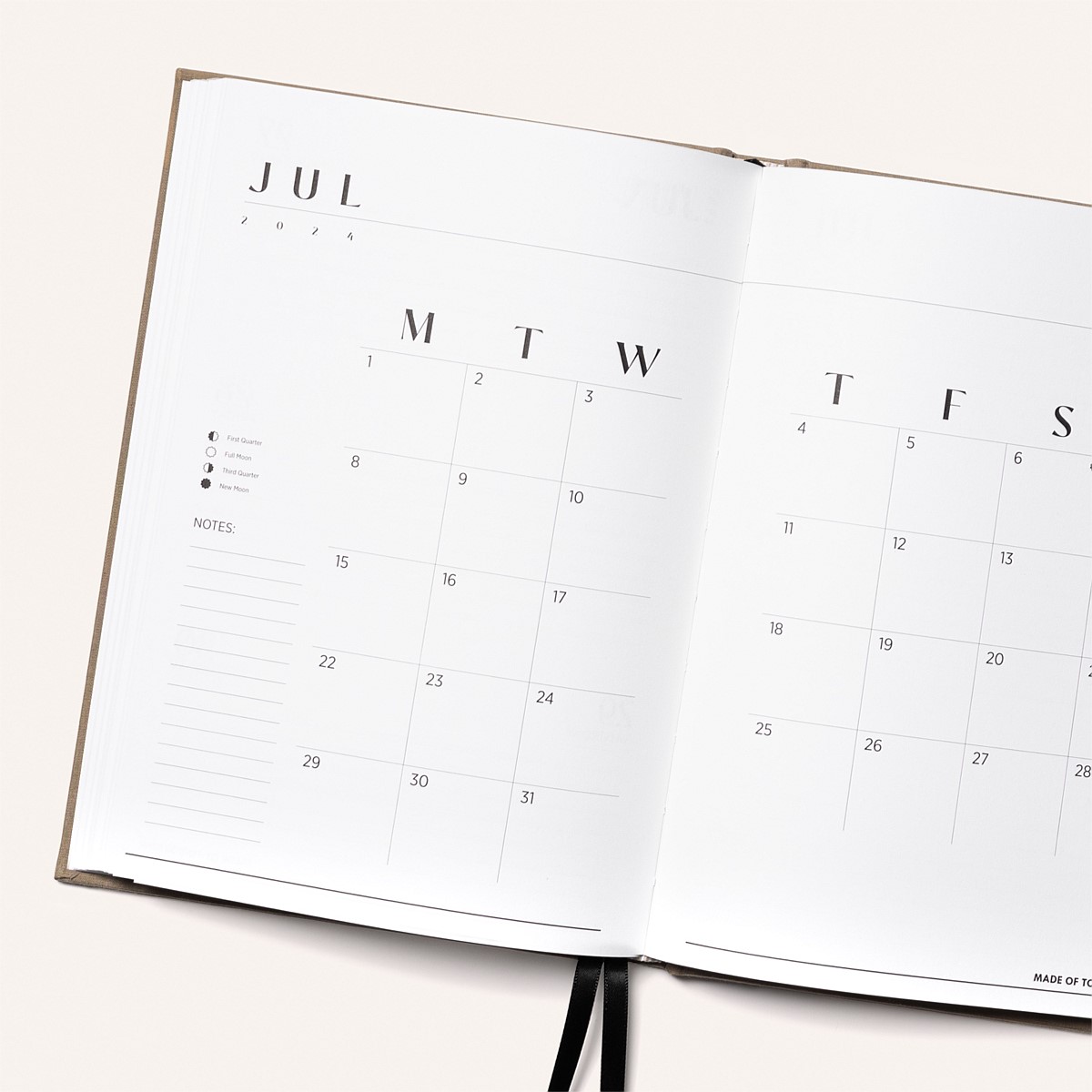 Enjoy new expanded pages with monthly and annual overviews, a Vision Board, Goal setting, Intentions, and Notes, along with the new Moon cycle displayed on the monthly overview.