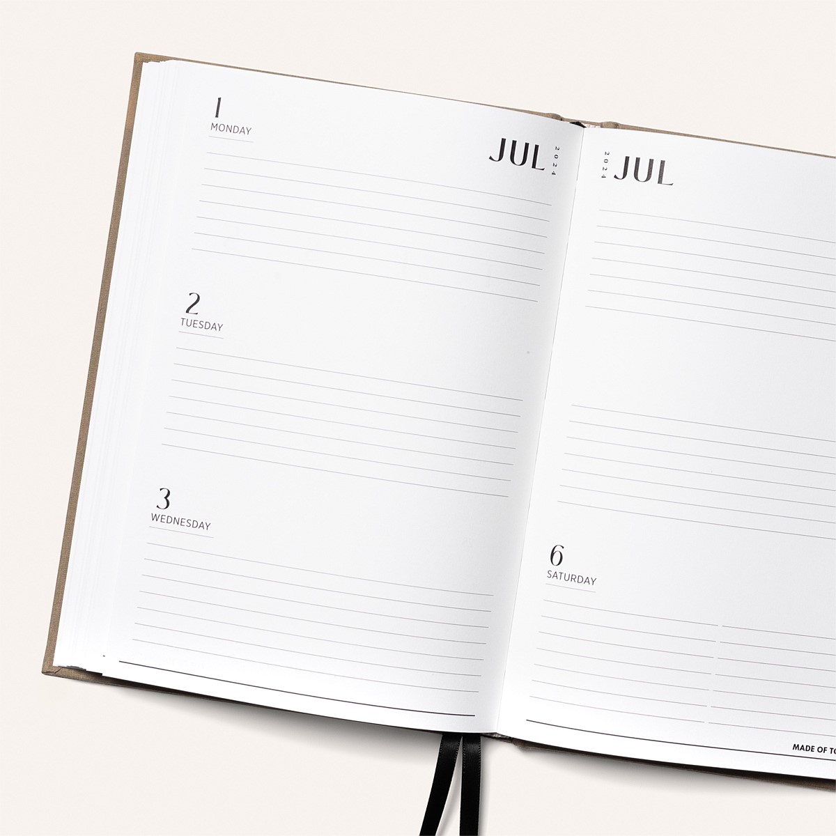 This diary provides ample writing space, with a full week spread across two pages, allowing you to capture all your important appointments and tasks with ease. It's made using recycled coffee cups, featuring FSC certified paper. The new cotton material hardcover and enhanced spine construction ensure durability.