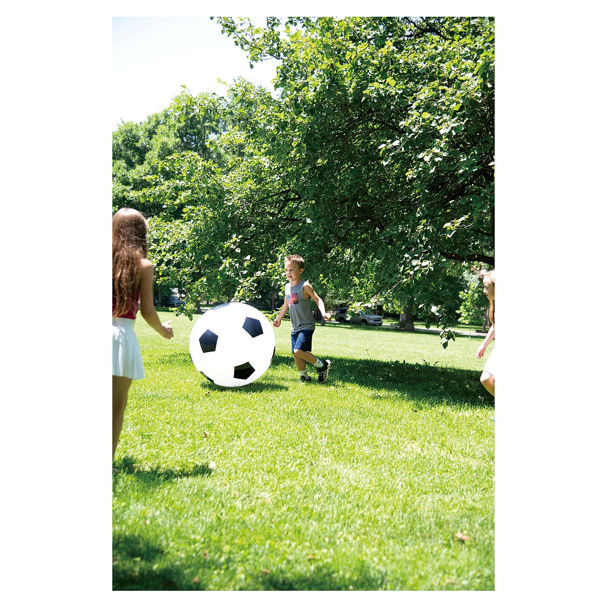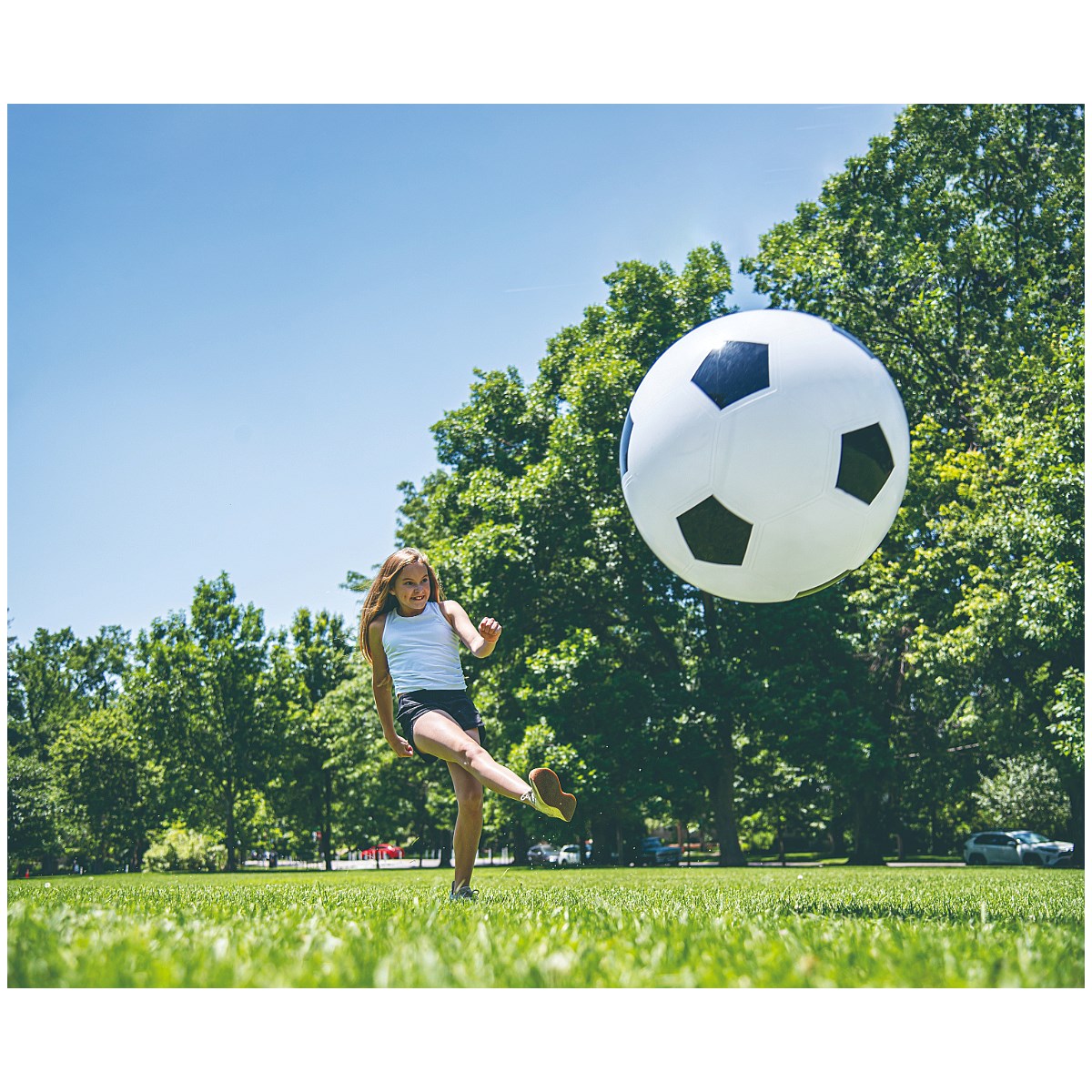 The Jumbo Soccer ball can be played with one or more kids, or fun for the entire team during soccer practice (or with the family)! Get the kids outside and running around with this super fun, popular rubber jumbo 30" diameter soccer ball, adding an element of playful kicking, chasing, and scoring. IT BOUNCES TOO! Use this durable soccer ball to get your kids having fun in their backyard/garden. Recommended to use for 2 or more kids, aged 5+. Take it to soccer practice for fun drills, or exciting game! • 30" Diameter Jumbo Soccer Ball