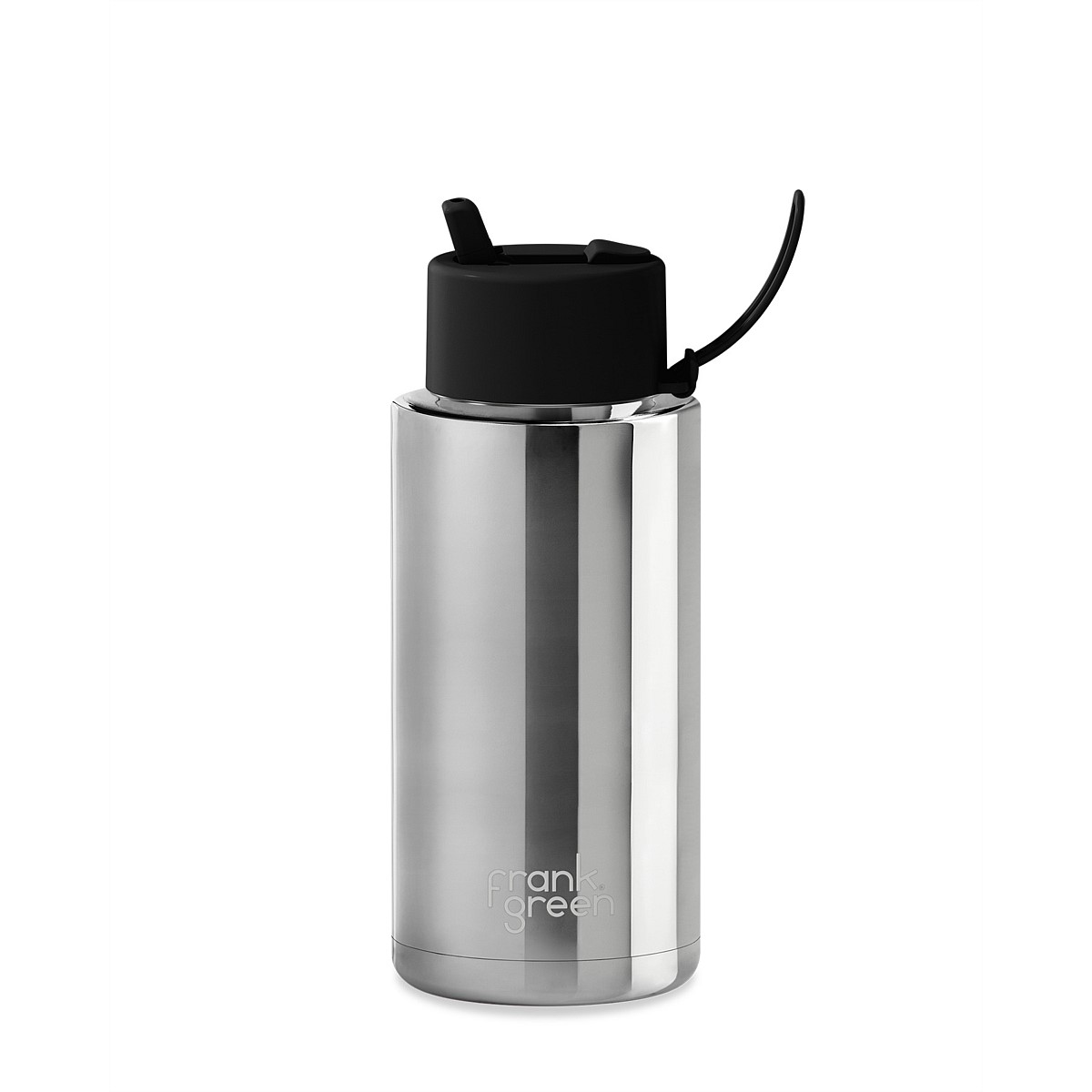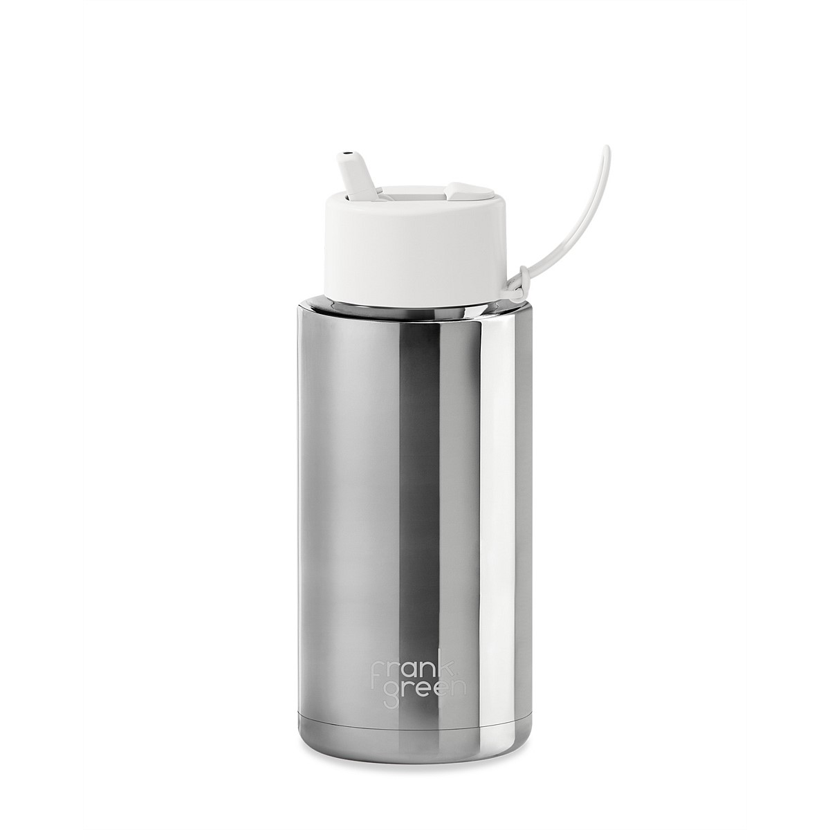 34oz Stainless Steel Ceramic Lined Reusable Chrome Bottle with Flip Straw Lid