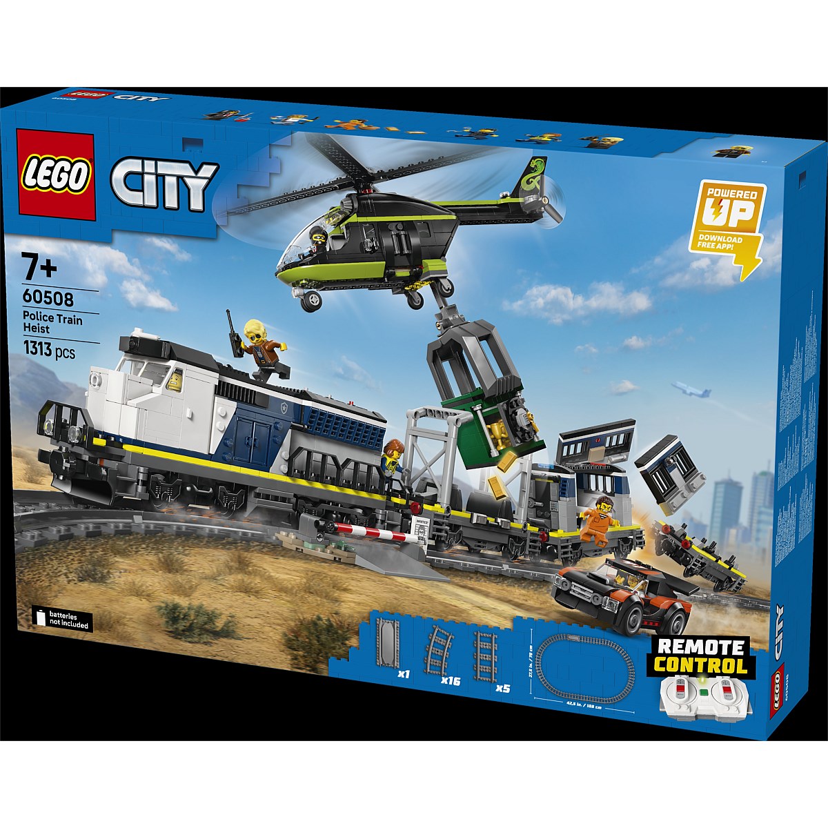 • TOY TRAIN POLICE PLAYSET – The LEGOCity Police Train Heist (60508) building kit features a motorised train, plus a helicopter, rally car, tracks and 6 minifigures for imaginative play