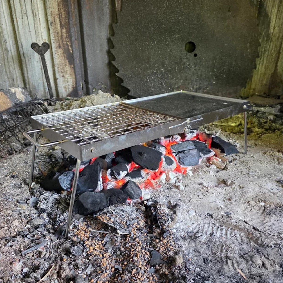 Made from durable 201 stainless steel, it packs flat, cleans easy, and is built to handle beach missions, bush trips, and backyard feeds.