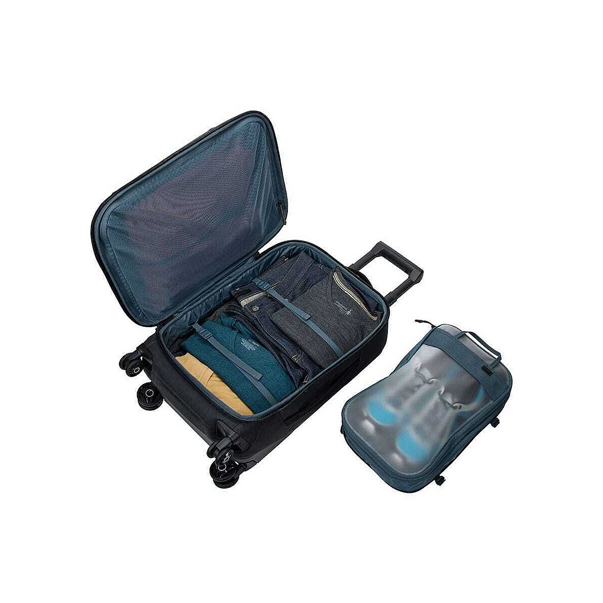 For the active traveler, the compression packing cube has an easy-to-clean TPU coating that locks in dirt, odour and moisture - perfect for separating dirty gym clothes or outdoor gear. When you're on the move, the oversized rear wheels ensure you can glide effortlessly over rough terrain, while the V-tubing telescoping handle makes it smooth and easy to pull.