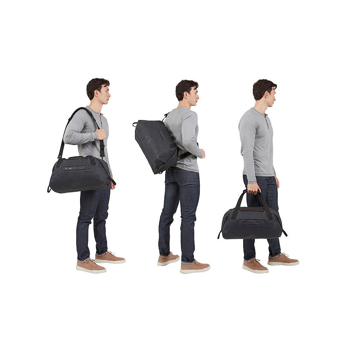 - Removable, padded shoulder straps convert the bag from a standard duffel to a crossbody carry