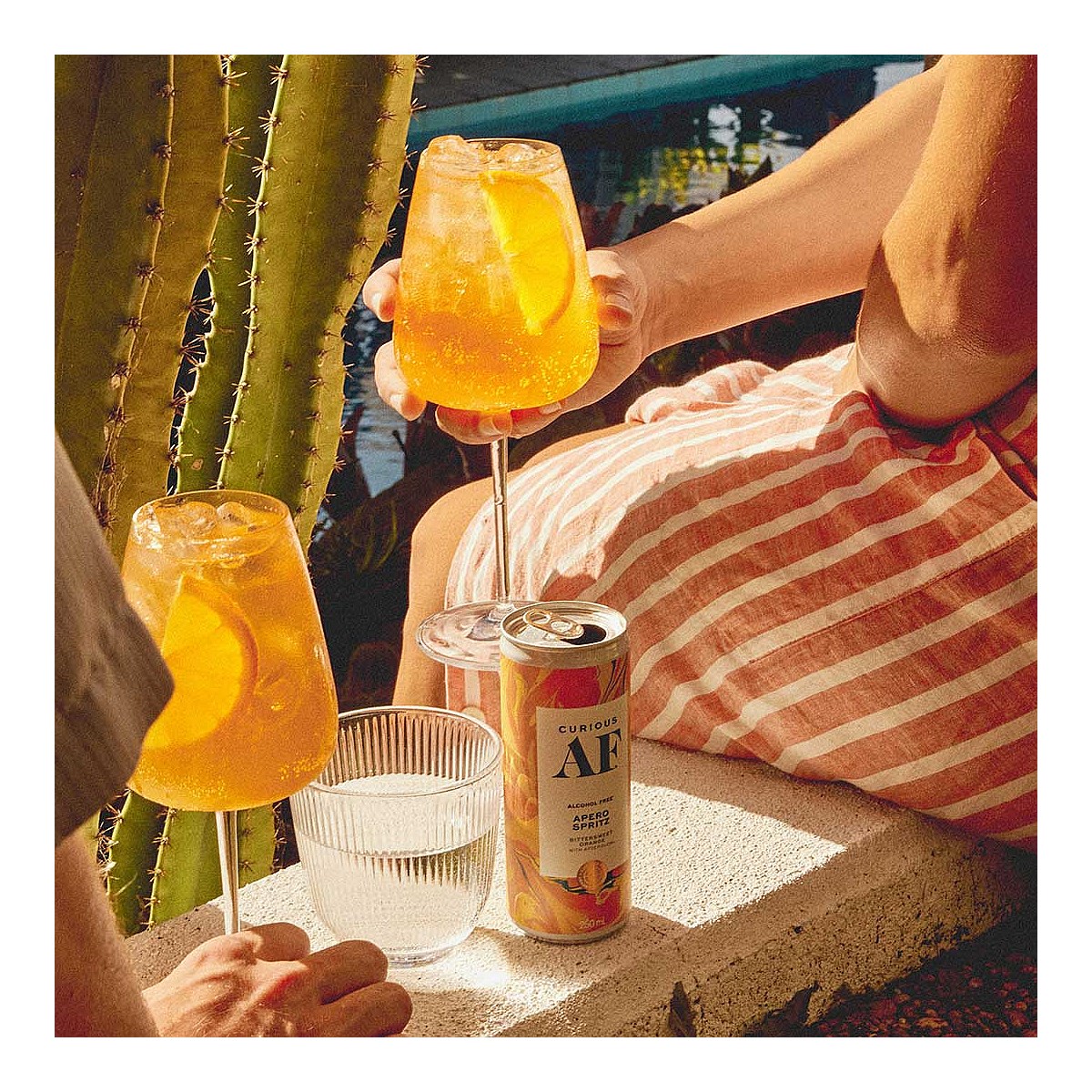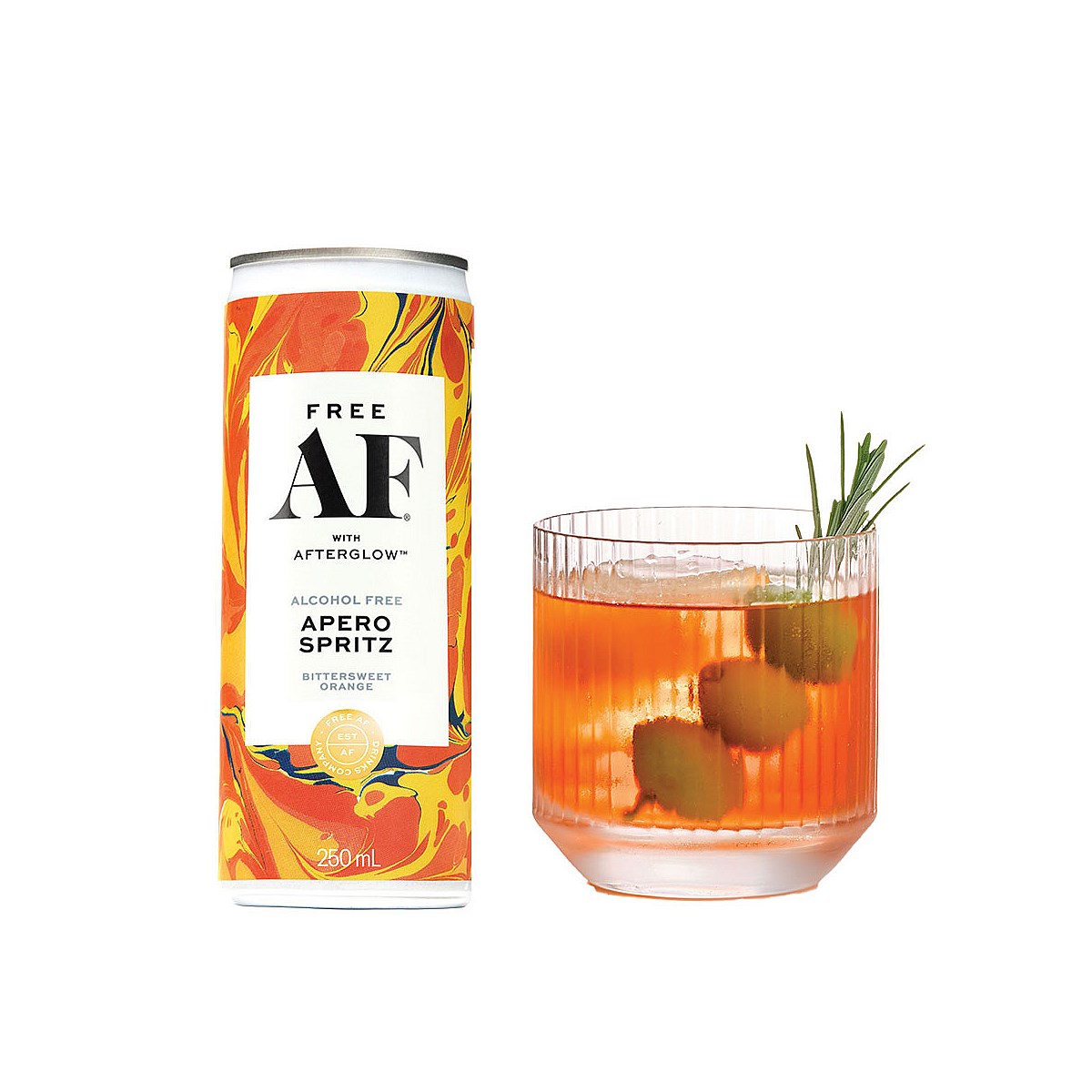 AF APERO SPRITZ WITH AFTERGLOW™; MIMICS THE PLEASANT WARMTH OF DRINKING ALCOHOL, WITHOUT THE ALCOHOL. THIS BITTERSWEET CONUNDRUM IS PERFECT FOR THOSE WHO LOVE A DRINK, BUT LIKE TO STAY SHARP AF.