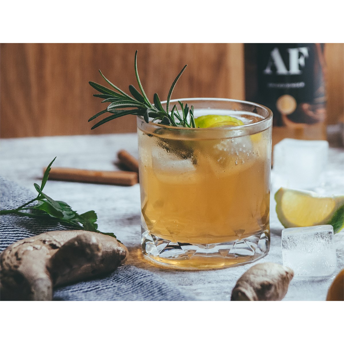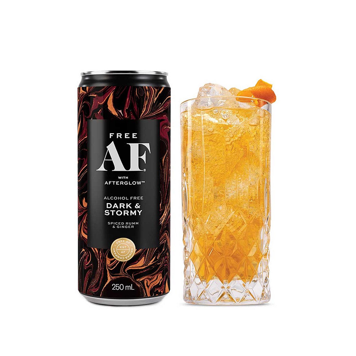 DARK & STORMY IS AN INTOXICATING BLEND OF SPICED RUM, GINGER ALE AND LIME. THIS ALCOHOL-FREE VERSION IS JUST AS HEADY, YET AS CLEAR-HEADED AF. WITH AFTERGLOW™.