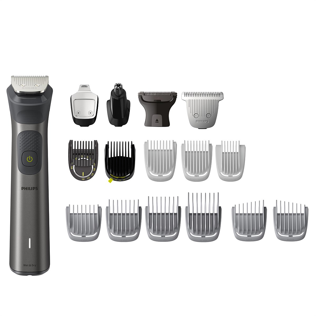 • Box contents:Trimmer handle, Nose and ear trimmer, Body shaver with skin protector, Steel precision trimmer, Precision trimming comb, 3-7 mm adjustable comb, 2 body combs, Eyebrow comb, 2 fading hair combs, 4 wide hair combs, storage pouch,cleaning brush, USB-A charging cable (wall power adaptor not included)
