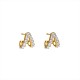 The Aria Earrings are handcrafted in 14k gold-plated sterling silver, featuring a modern V-shaped design that hugs the lobe for a sleek, contoured fit. These mini double hoops are set with sparkling white cubic zirconia for a diamond-like shimmer.