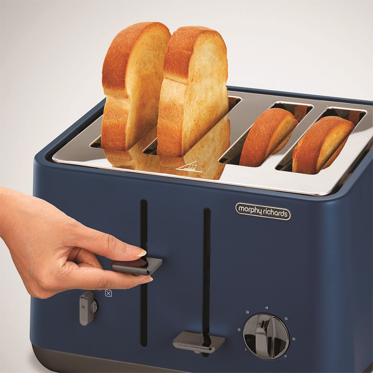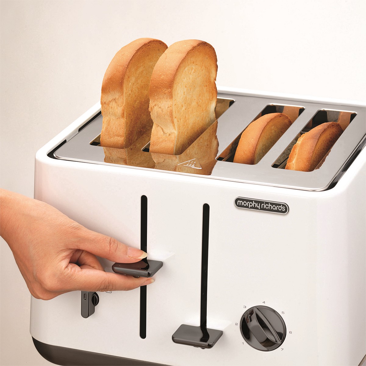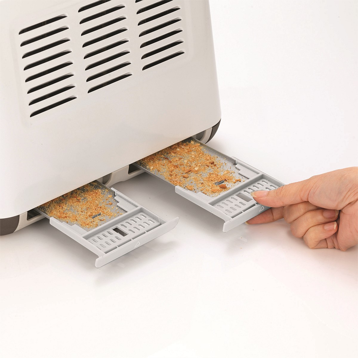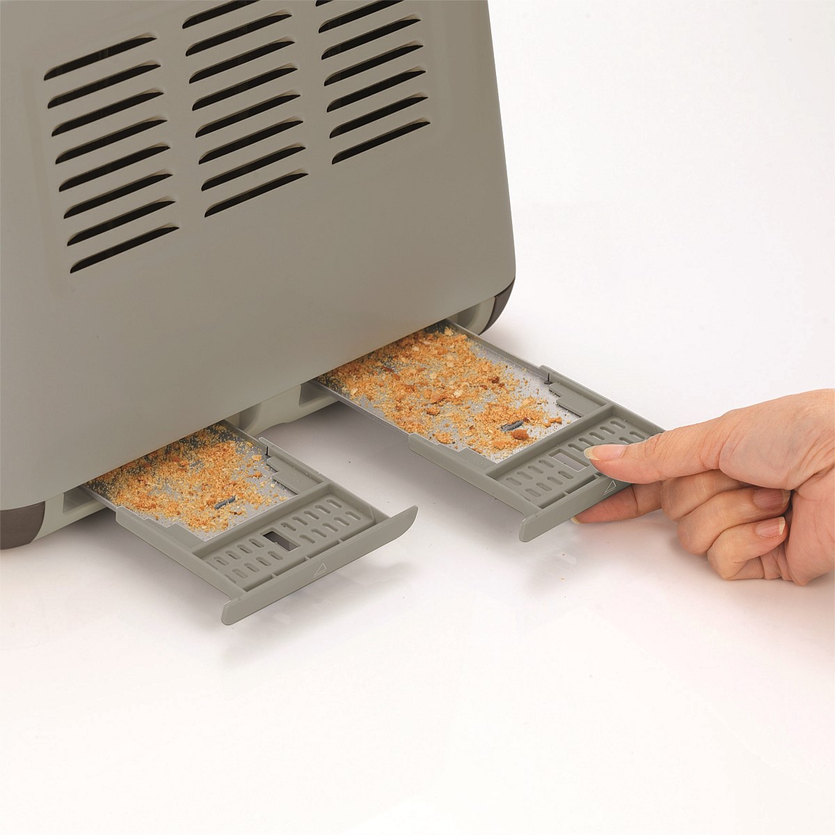 The 4 slicer toaster includes variable browning control and sneak peak function. The removable crumb tray, defrost and reheat settings are an added addition.