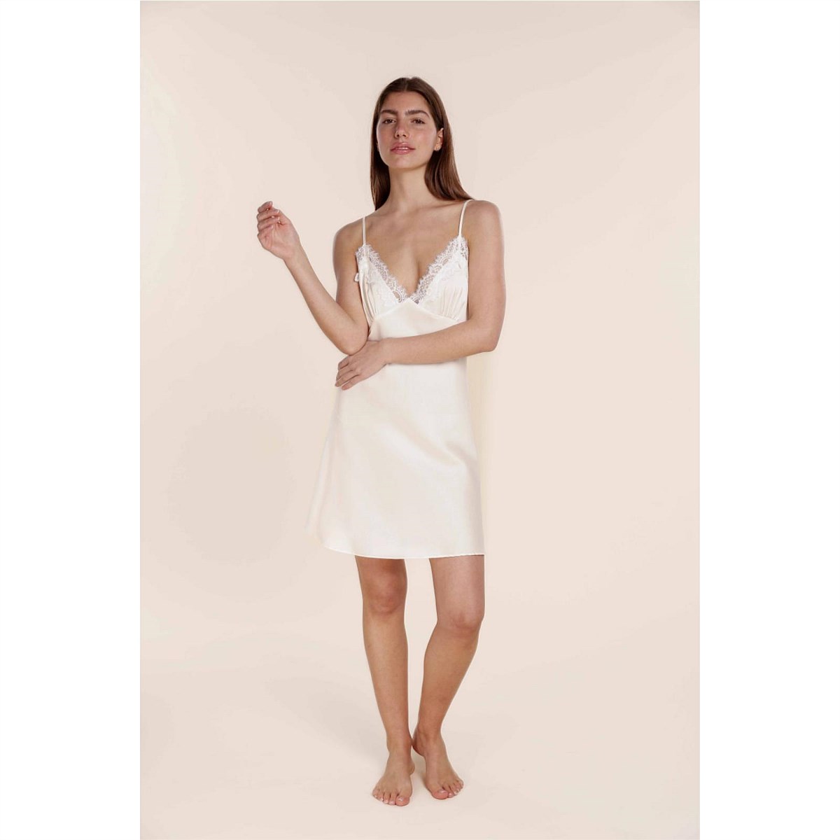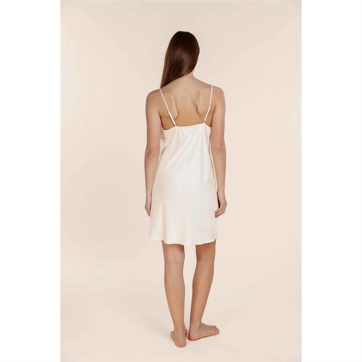 The Azalia Short Chemise brings an understated elegance you can wear well beyond the bedroom. Made from recycled silky satin, it feels soft against the skin while skimming the body in a flattering cut. The lace detail at the bust adds a romantic touch, and the adjustable straps ensure comfort all day or night. Falling above the knee, it works just as well for a slow morning at home as it does layered under a trench for an effortlessly chic evening look.