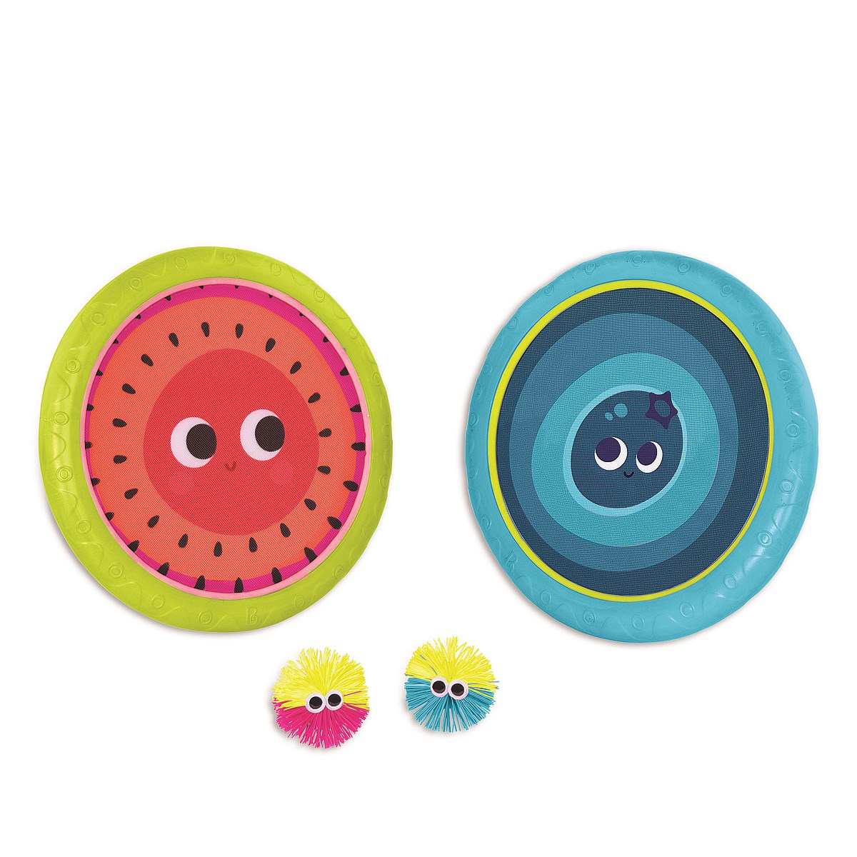 Unleash the fun in the backyard or on the beach with the Poppin’ Paddles from B. toys! This paddle ball set comes with 2 hand trampolines and 2 balls that kids can use in a variety of ways. Pop the wacky ball from paddle to paddle, toss ’em like a flying disc, put a unique spin on classics like tennis and volleyball, or make a splash in the pool – these waterproof paddles float! On top of keeping little ones active, this game also improves gross motor skills and hand-eye coordination. And because we at B. keep the environment in mind, parents will be happy to know that our packaging is 100% recyclable. Recommended for children 3 years and over.