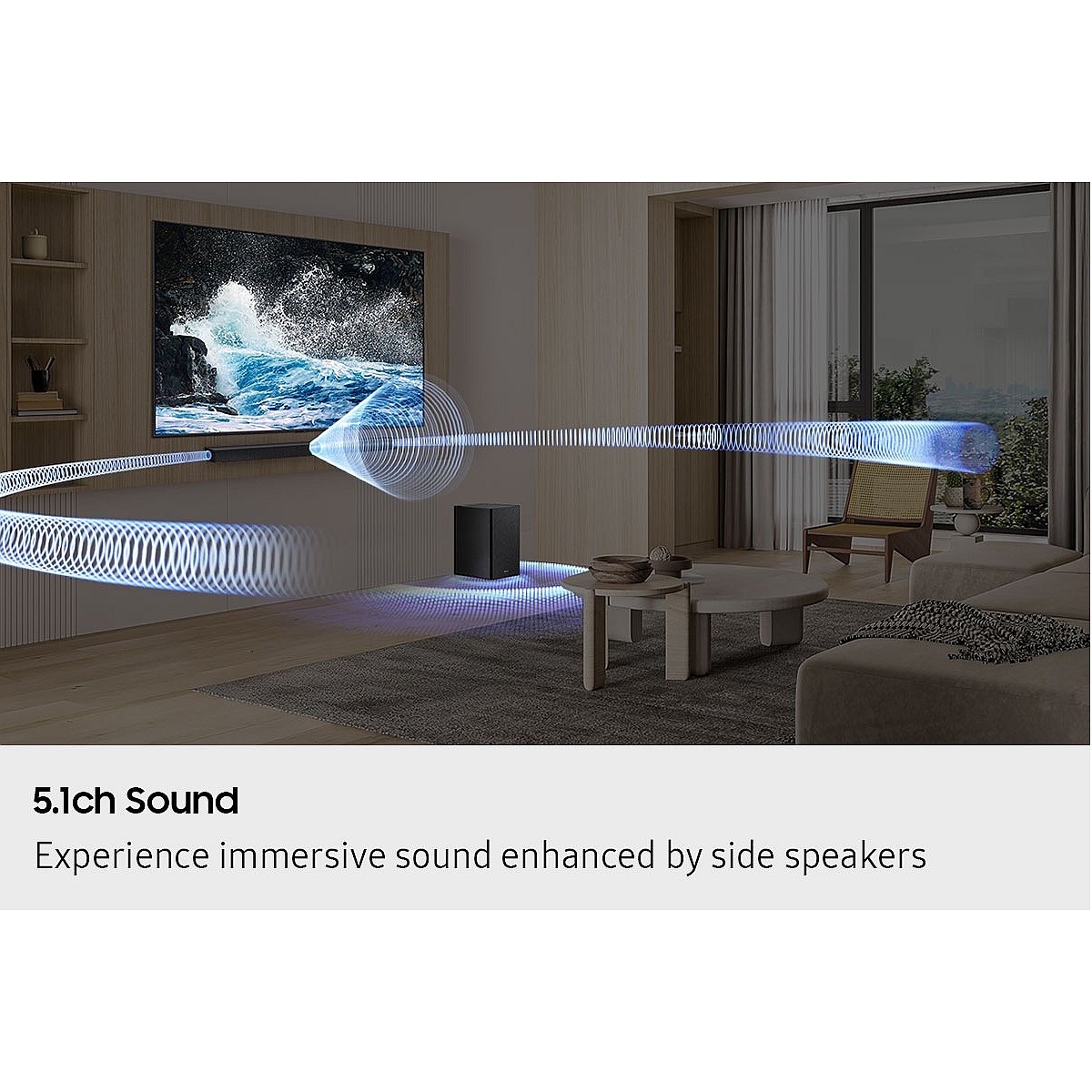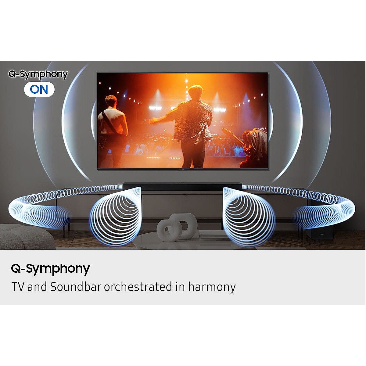 * Q-Symphony requires a compatible 2022-2025 Samsung TV (BU8000 and above for 2022 models, CU7000 and above for 2023 models, DU7000 and above for 2024 models, U8000F and above for 2025 models, and 2022-2025 models of The Frame).