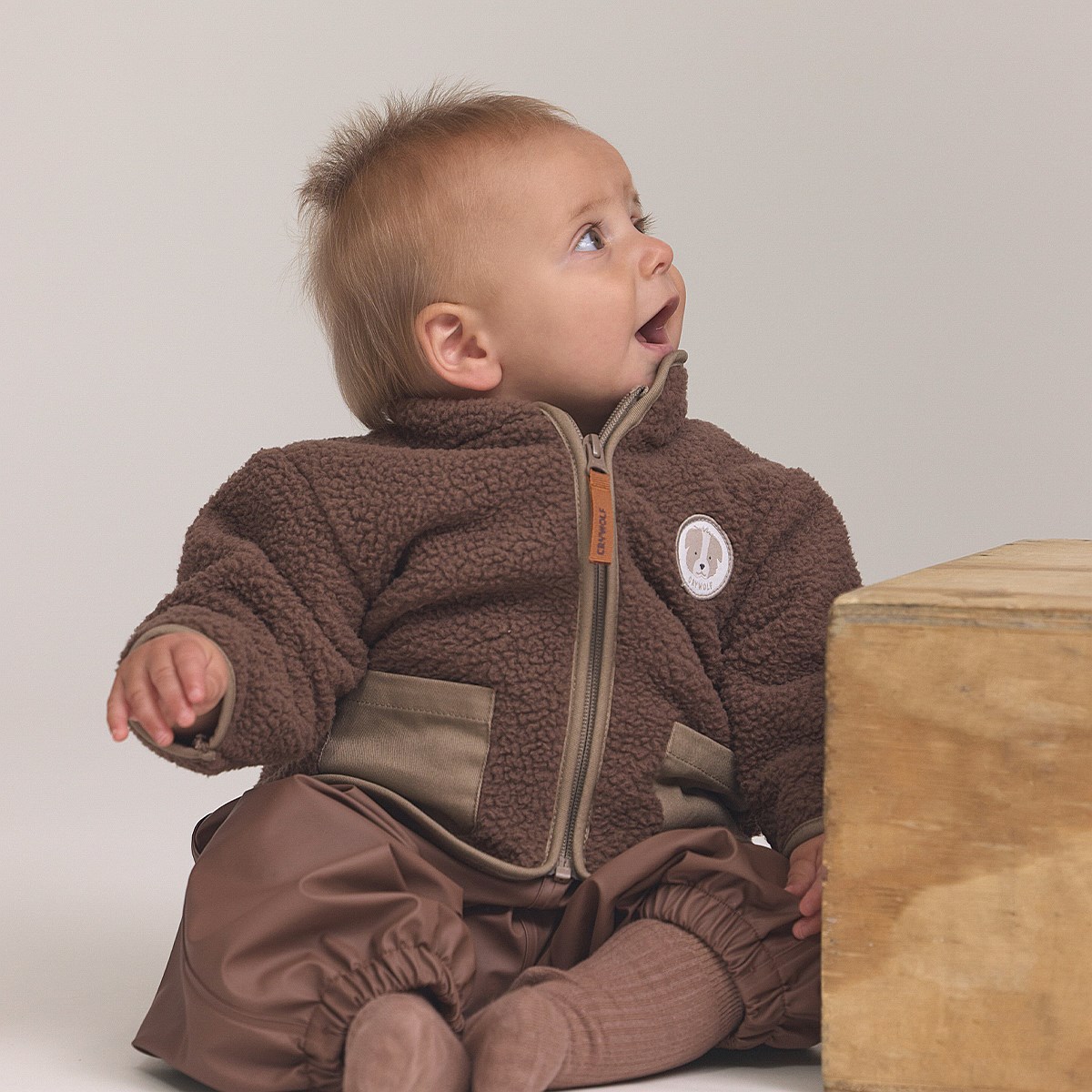 Keep them cosy and comfortable with the Crywolf Baby Sherpa Jacket, made from recycled faux-shearling that is soft on skin and gentle on the planet. Designed with a full zip for easy changes and wind protection for outdoor play, it is finished with cotton-lined pockets and a playful chest patch for extra charm.