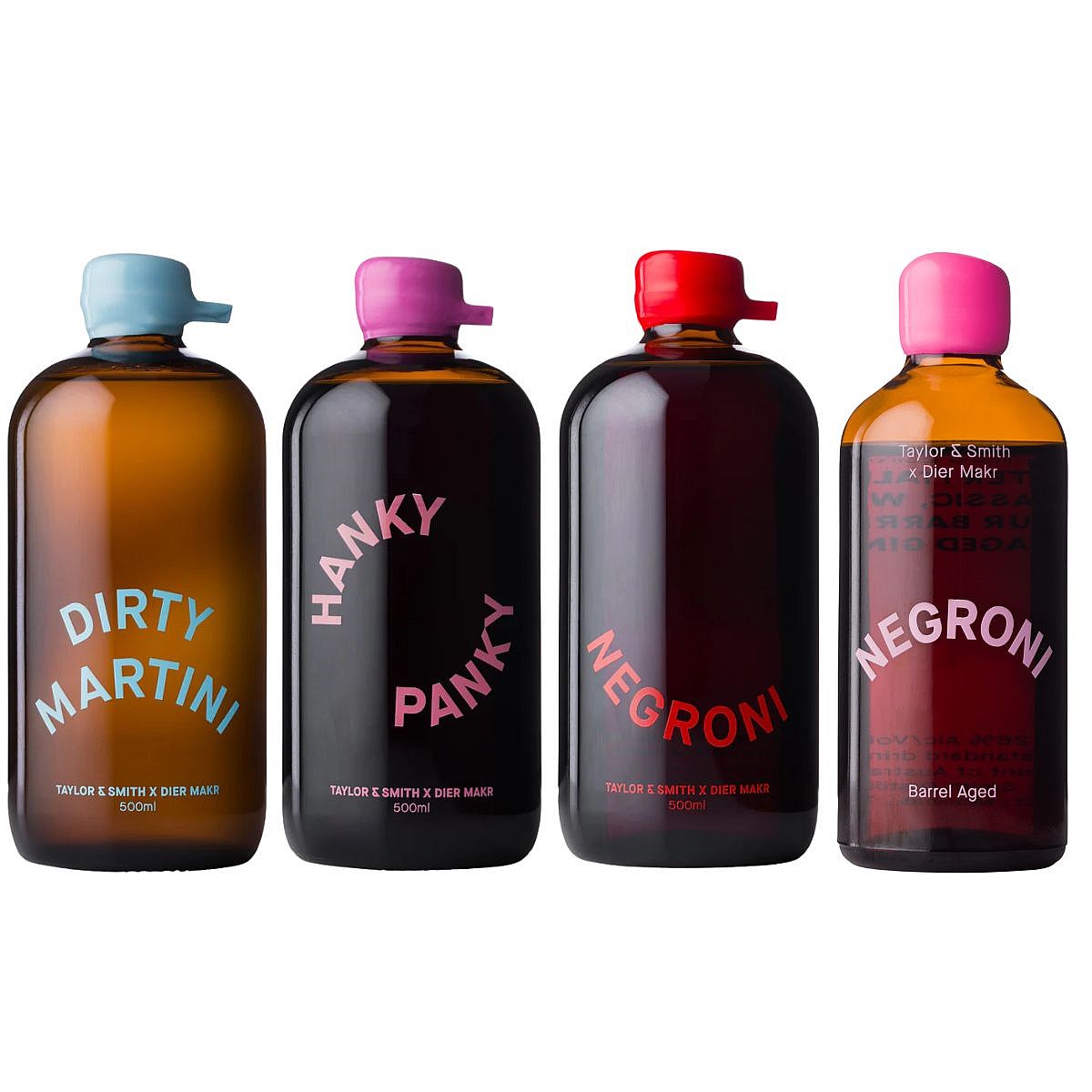 An impressive collection from Taylor & Smith — four beautifully crafted bottled cocktails, ready to pour and enjoy. Featuring their Barrel Aged Negroni, Dirty Martini, Hanky Panky, and classic Negroni, this pack brings bar-quality mixing straight to your home. Four bottles, sustainably packed and delivered.