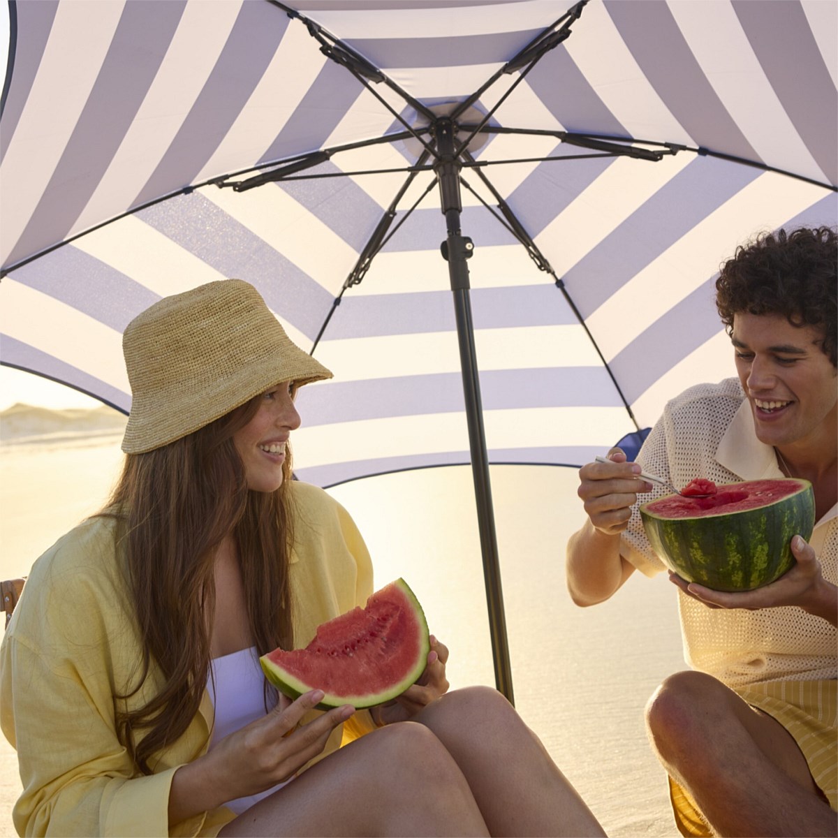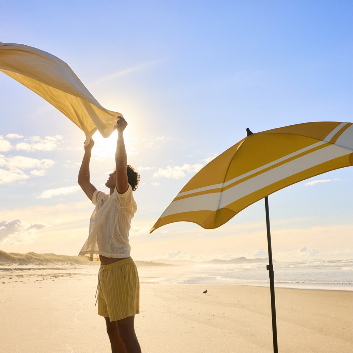The BLUNT Beach Umbrella canopy is UPF 50+, blocking 99% of UV rays and comes with a convenient carry bag, a tilting canopy and a Sand Anchor Kit featuring an anchor, mallet, sandbag and lanyards for extra stability when conditions call for it, meaning you can stay shaded all day long.
