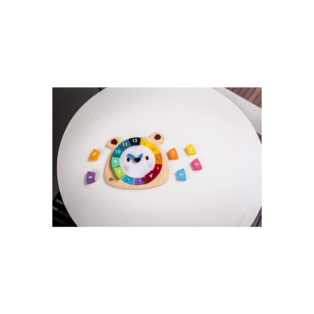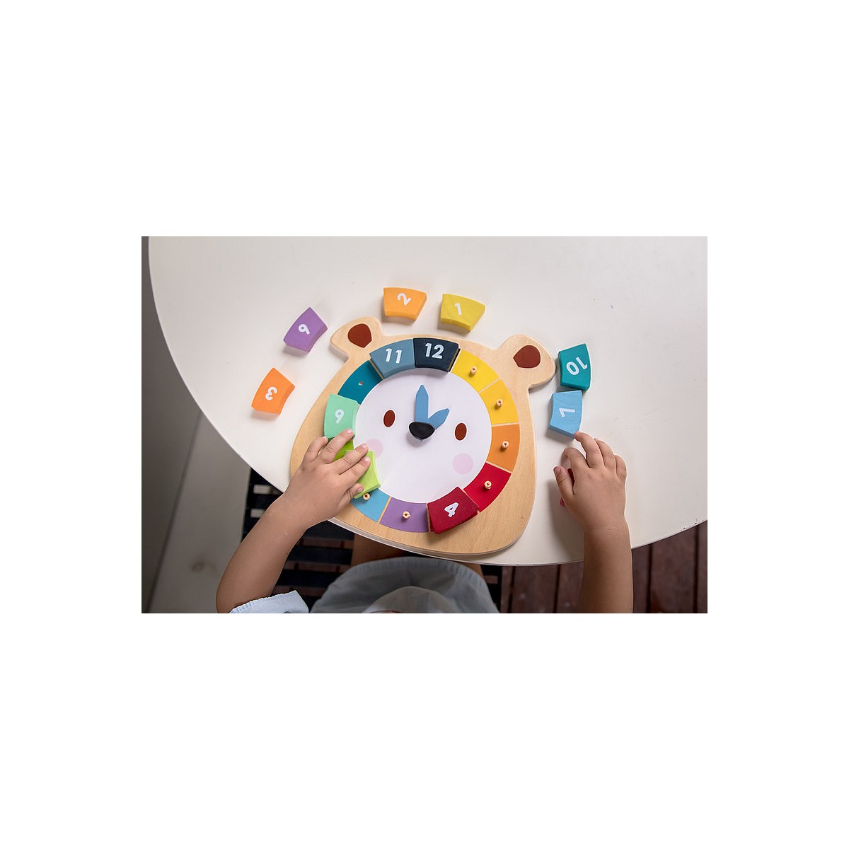 There is so much to learn with this clock while having fun. Learn to tell the time and understand how time works. This clock also teaches colour recognition as children can match the colours of the blocks.