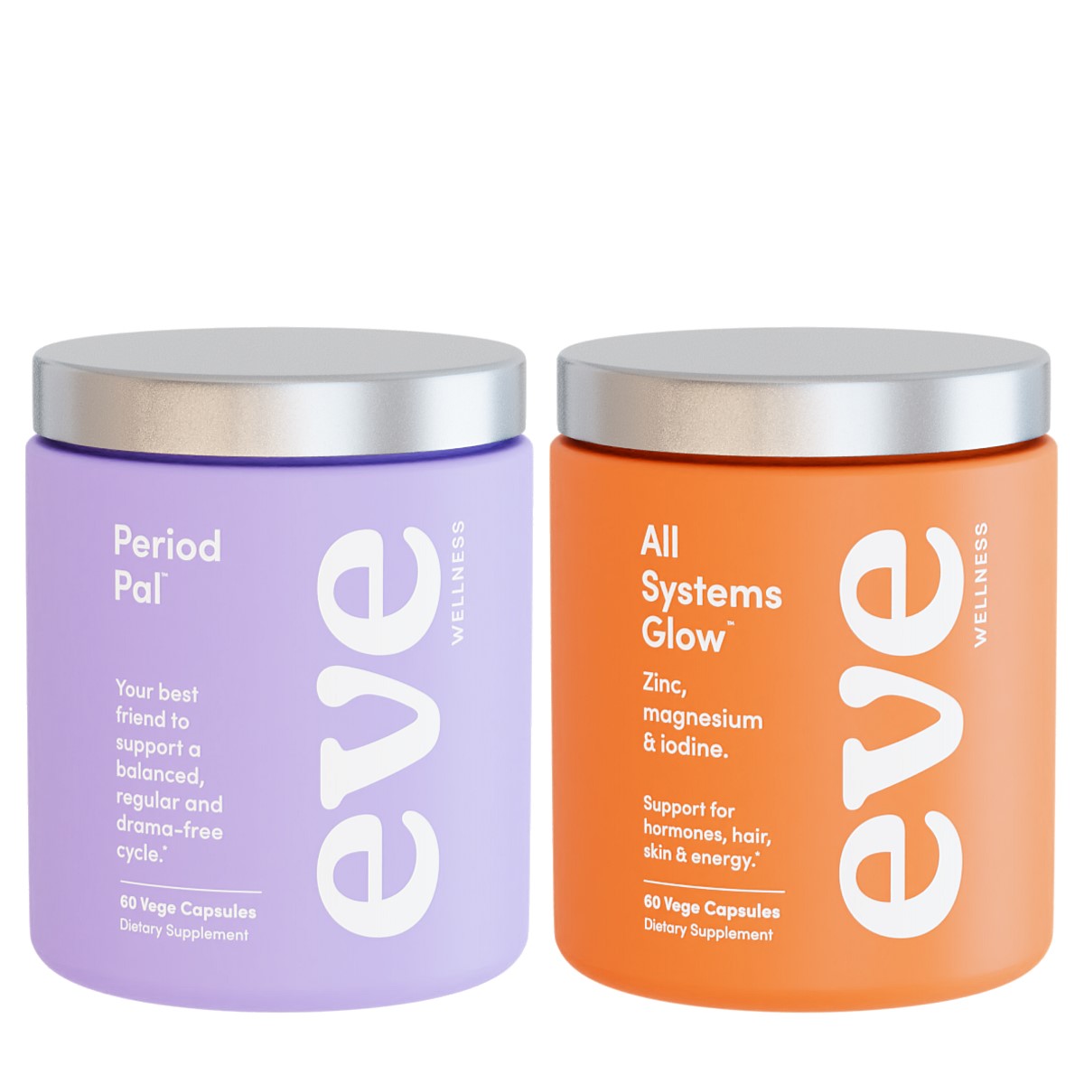 This pack contains a 30-day supply of Period Pal and All Systems Glow.