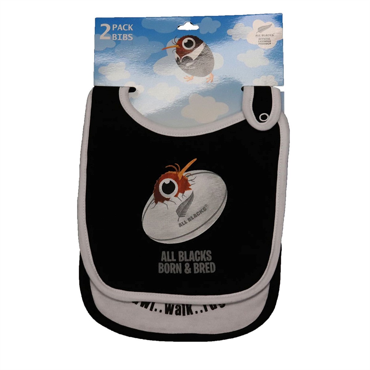 Two pack printed bibs. Black Bib "All Blacks Born & Bred" and White bib "crawl...walk..rugby".