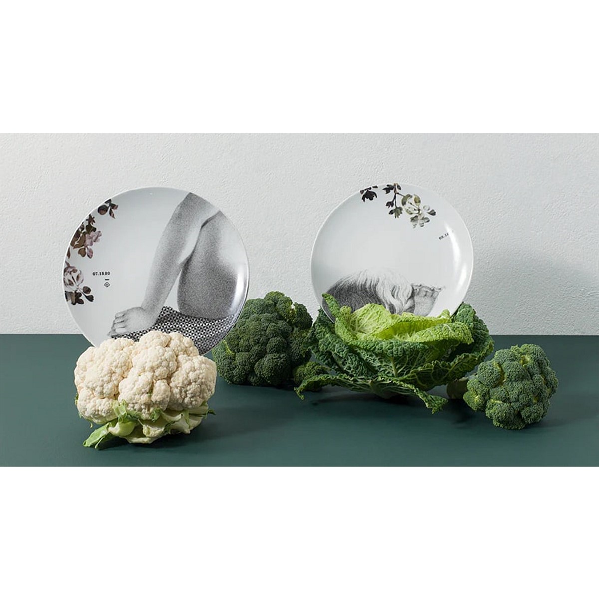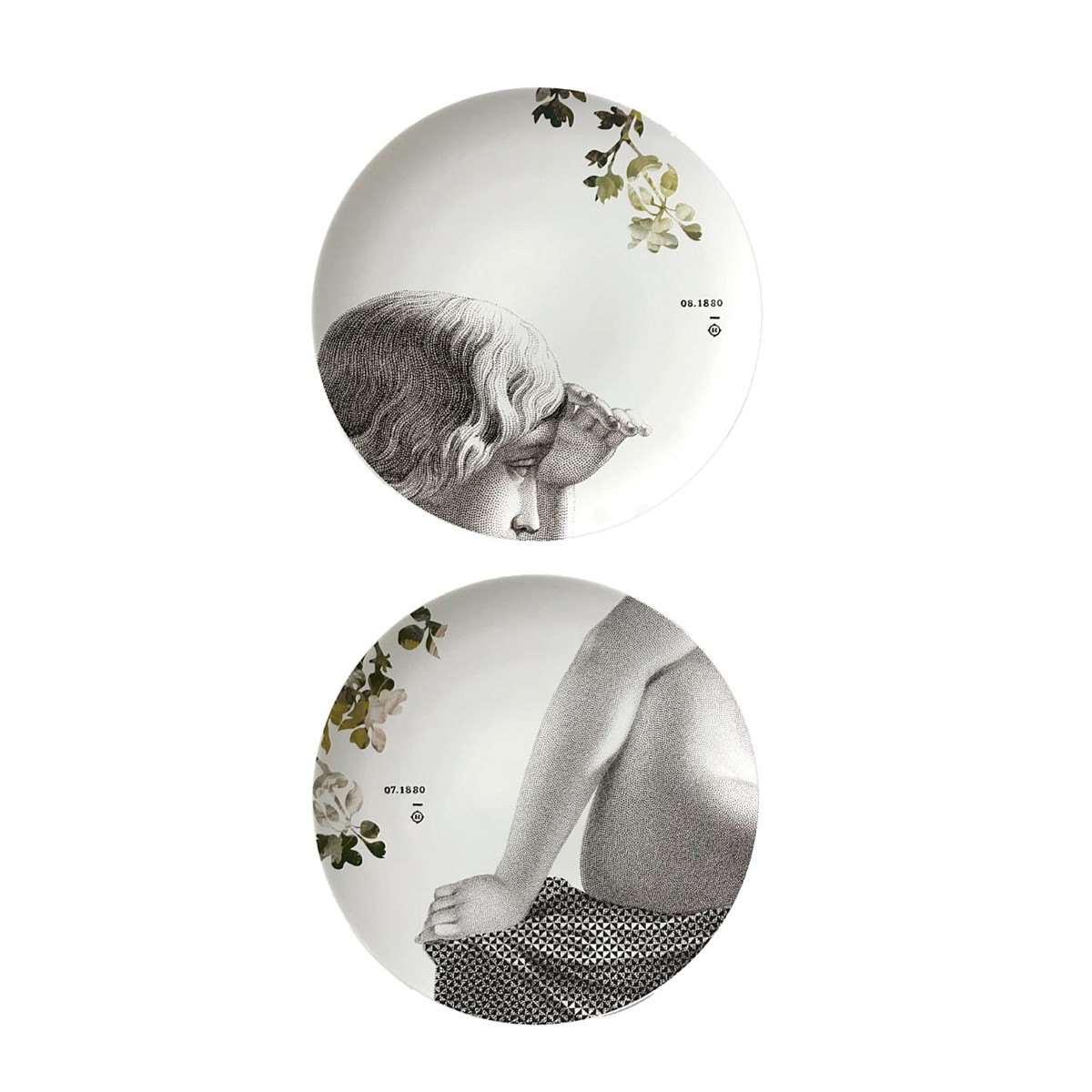 The new Parnasse collection in porcelain duos is an ode to the nobility of worked stone. Rachel Convers invites us on a bucolic stroll where the statues of the park, immortal presences of outdated beauty, are slowly colonised by the vegetation. In each pair of plates, the beautiful courtesans with their stone bodies dialogue delicately with the refinement of the porcelain.