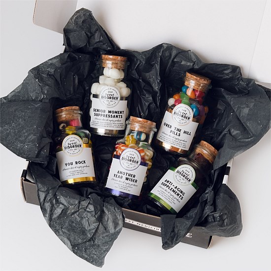 - Includes 5 birthday-themed remedies: You Rock, Anti-Aging Supplements, Another Year Wiser, Senior Moment Suppressants, and Over the Hill Pills.