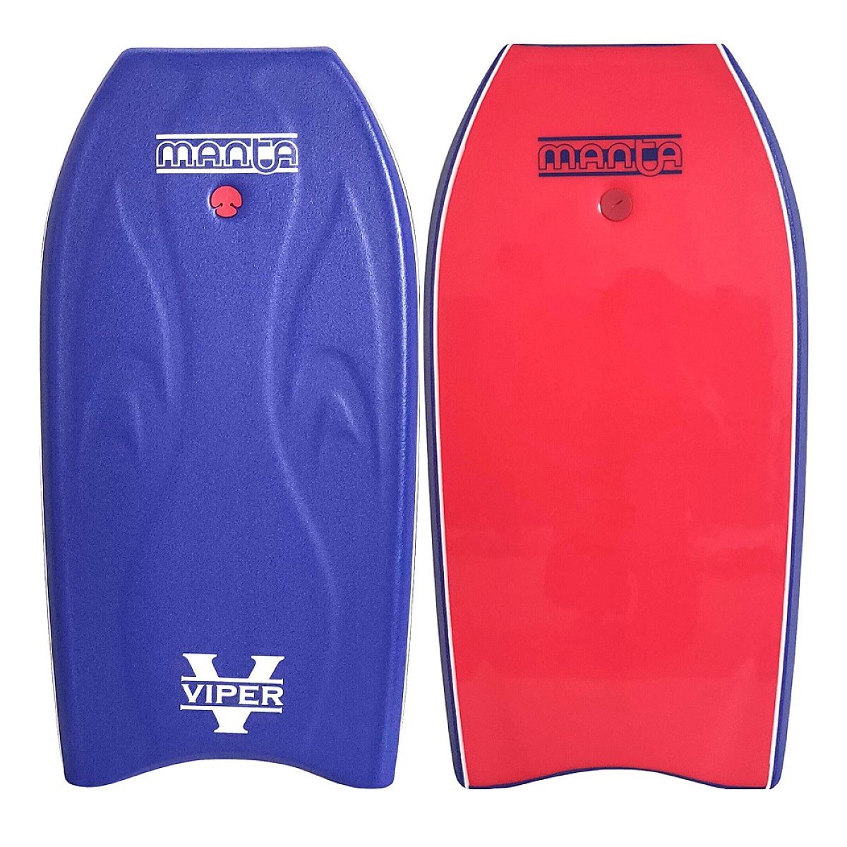 A Bodyboard with High Grade EPS Core and a fibreglass stringer, Full Deck Contour and a Double Swivel Coil Leash. The Viper is a Bodyboard which really stands out amongst other brands' generic EPS Bodyboards. The look and spec of a high end Bodyboard without the heavy price tag, Manta's Viper is the ultimate EPS beginner to intermediate bodyboard.