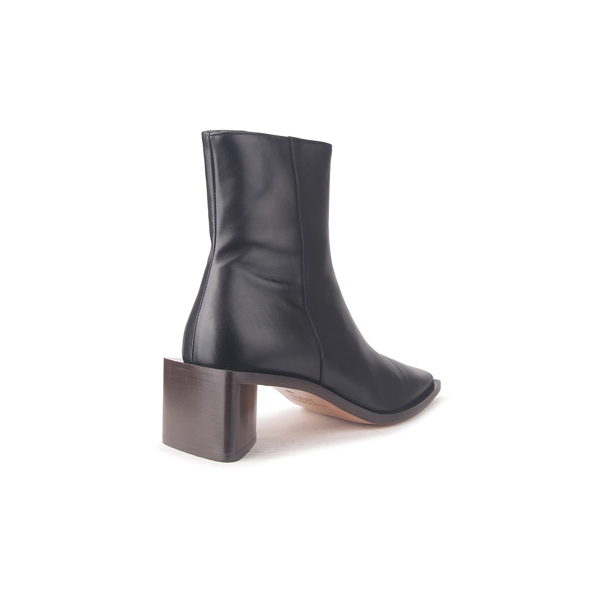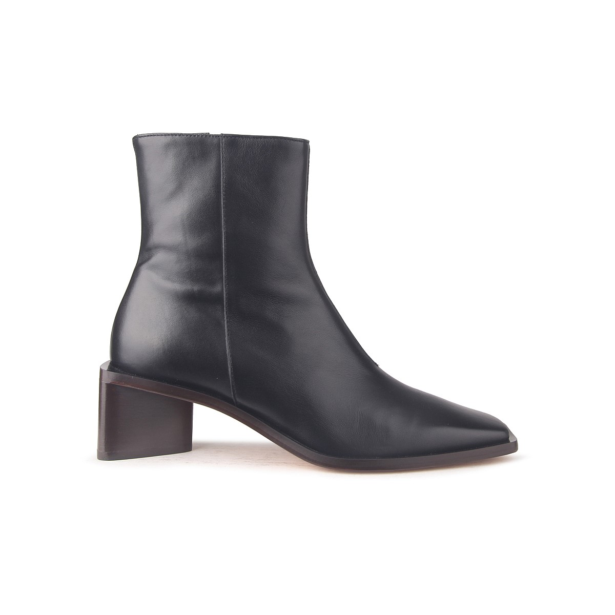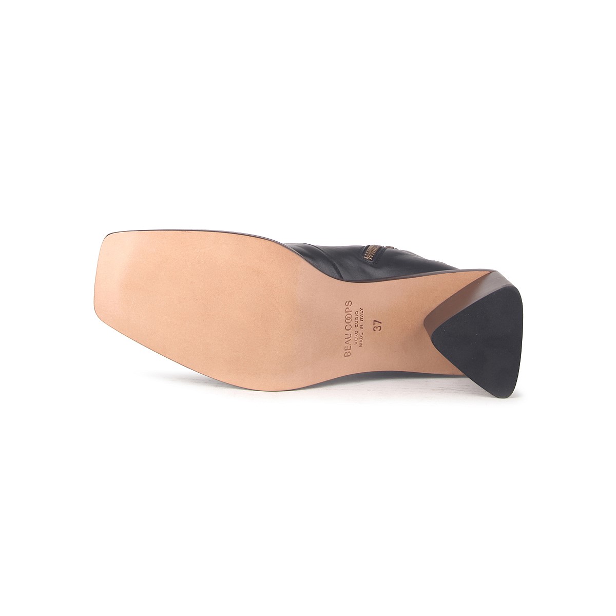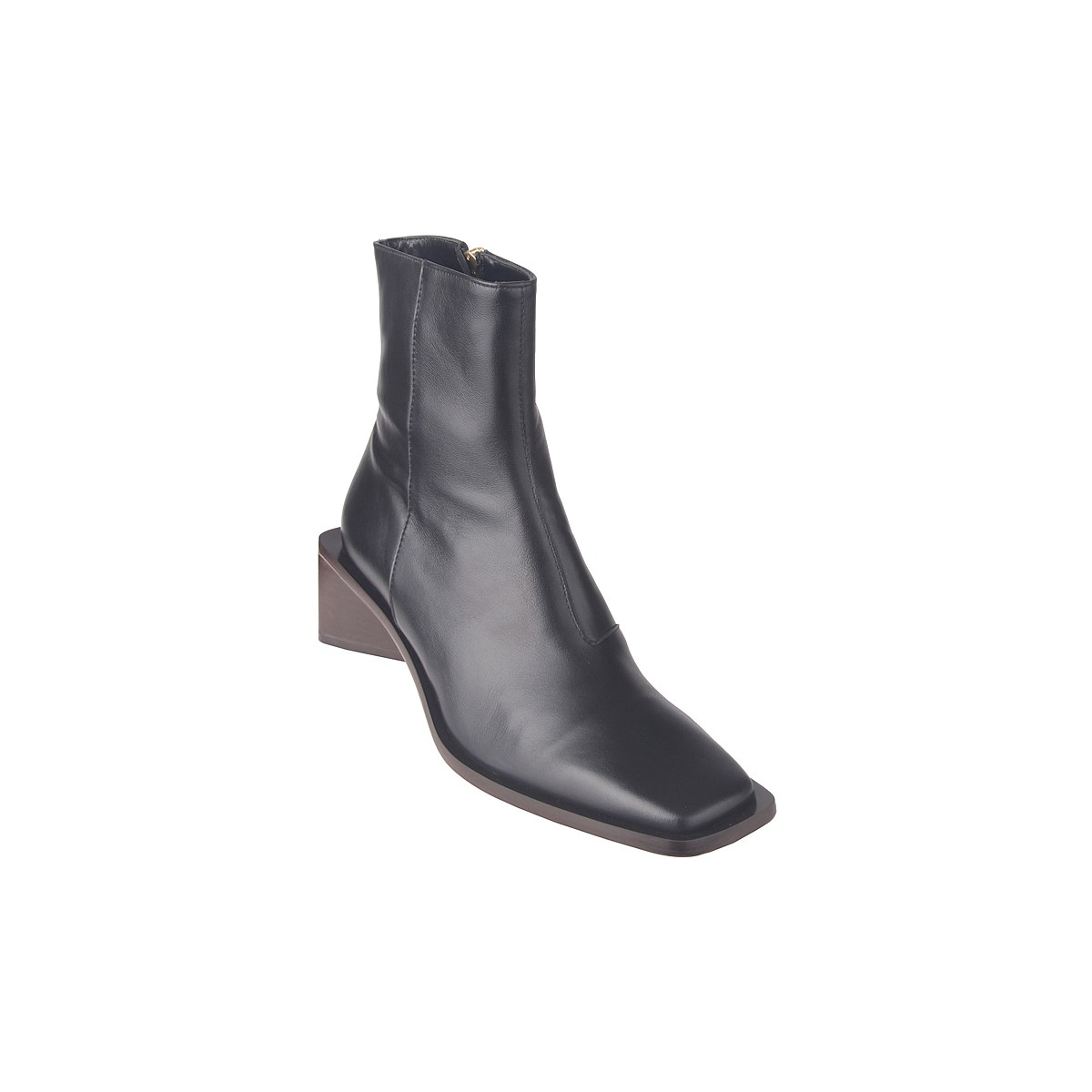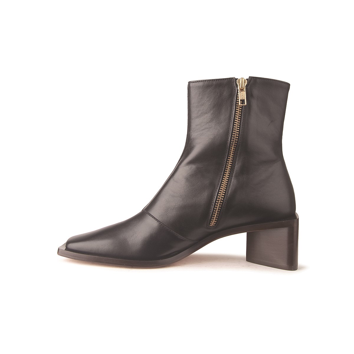 Refined and minimilistic, the Bolivar ankle boots by Beau Coops are crafted in Italy from luscious, smooth leather and set on a unique asymmetric leather sole. Great for long city days, they feature a square toe and an inner zip for optimum comfort. Take advantage of the chic geometric heel to give a slight lift to tailored trousers.