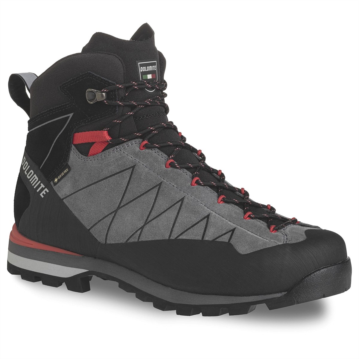 Dolomite's Boot Crodarossa Hi GTX is perfect for mountain, hiking, or trekking excursions. The Gore-Tex membrane provides means the boot is completely waterproof and breathable, making it appropriate for all weather conditions in outdoor terrain to make sure your feet are warm and dry. Tramping should be made as easy and accessible as possible, and this hiking shoe does just that. The Vibram outsole has a Megagrip rubber compound to keep you safe and stable on a variety of terrains and climbing paths. Outdoor adventures are made just that little more stress-free with this trekking shoe, emphasised also through the slipknot lacing that makes it easy and quick to put on and take off. Add these to your outdoor wardrobe, you will never look back!