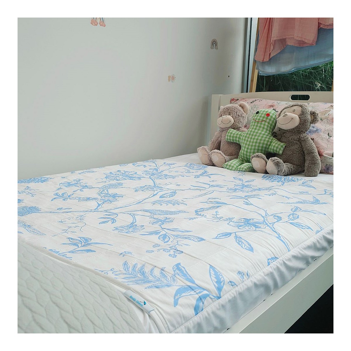 Cotton topped, waterproof bed pad with wings. Simply place on top of your bottom sheet and enjoy no more stripping the bed! These genius bed pads for bed wetting, potty training, and incontinence can absorb up to 2L of liquid and feature wings so they stay put all night.